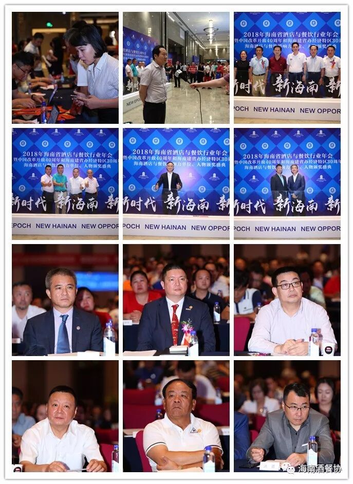 4月26日,“2018年海南酒店与餐饮行业年会暨暨行业工资集体协商专项合同签约仪式”在海南迎宾馆召开。中国饭店协会会长韩明,省总工会党组书记王全,省人大常委会原秘书长、省酒餐协三届理事会会长、省绿色饭店工作委员会主任翟培基,原省计划厅厅长黄宝璋,省总工会副主席郭奕秋,省质量技术监督局副局长肖超,省人力资源和社会保障厅副巡视员龙小敏,省总工会副巡视员、省财贸旅游工会筹备组组长高光辉,原省旅游局巡视员梁定民,省国资委原监事会主席梁学伟,省工商联商会协会处处长陈贤敏,省食品药品监督管理局调研员雷宝星,海南省商务厅服贸处副处长李鹏,省旅游委副处长刘静文,海口市商务局总经济师陈亮,南海经济技术研究院院长胡卫东,国家开放大学(海南)国际旅游学院执行院长杨哲昆,省酒餐协理事长、海南龙泉集团有限公司董事长符史钦,第五届省政协社会法制委副主任、香港华侨总会名誉会长钟保家,中国饭店协会副监事长、海南省酒店与餐饮行业协会执行会长、海南省酒店与餐饮行业工会联合会主席陈恒,省酒餐协主席团主席、副会长及我省酒店餐饮企业董事长、总经理、业内专家学者、产业链上下游企业、省内院校、省内主流媒体等各界700余名代表出席大会。
