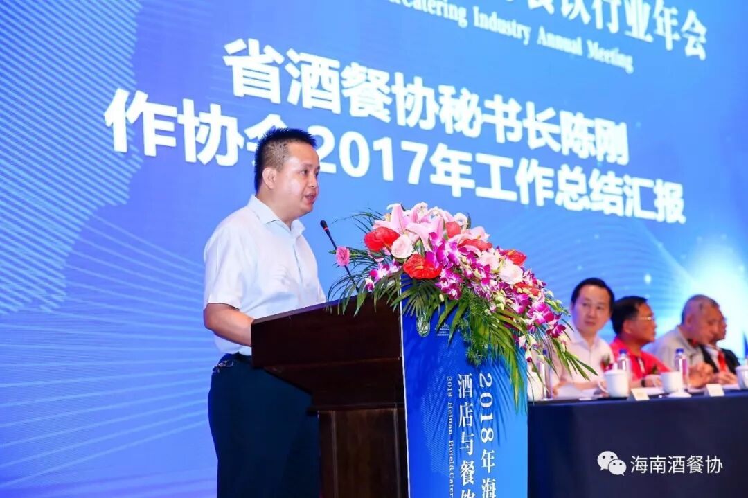 会上,陈刚秘书长汇报了2017年协会所做工作。他表示,过去一年,在中国饭店协会、省商务厅、省总工会、省人社厅、省农业厅、省旅游委、海口市政府等有关部门的指导以及行业企业、社会各界的支持下,协会各项工作取得新成就,成功承办了“CCTV厨王争霸走进海南”、“2017亚太酒店合作论坛”、“最美时光·舌尖海南——中外媒体海南美食之旅”、“第二届中国国际饭店业大会暨海南特色美食文化节”、“2017冬交会海南农产品烹饪创新大赛”、“2017博鳌美食文化论坛活动之海南特色餐饮发展座谈会”等六场大型项目活动;推荐海口市获评“中国休闲美食名城” 称号、文昌市获评“中国文昌鸡美食之乡”称号;成立了海南省酒店与餐饮行业技能人才评价委员会、人力资源与校企合作委员会等分支机构;参与起草了海南省地方标准《会议型酒店等级划分与评定》,由省质量技术监督局2017年11月20日正式发布。以上重点工作的开展,有效促进了行业规范、持续和健康发展。