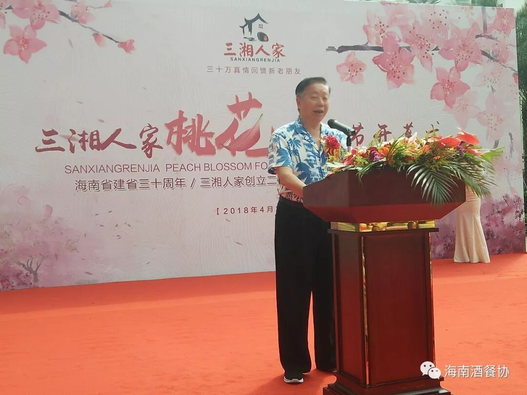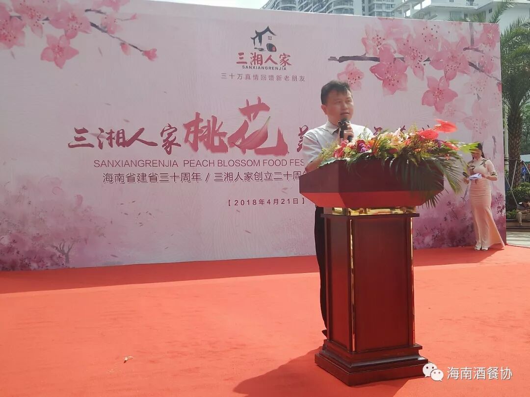 4月21日,省酒餐协副会长单位海口三湘人家酒店管理有限公司一年一度的第十五届三湘人家桃花美食节开节在海口阳光友谊广场隆重开幕,省酒餐协三届理事会会长、省绿色饭店工作委员会主任翟培基,省酒餐协副会长兼秘书长陈刚及餐饮业同仁和新闻媒体等应邀出席开幕式。