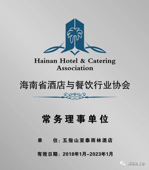 经海南省酒店与餐饮行业协会会议研究决定,将五指山亚泰雨林酒店增选为第三届理事会常务理事单位,同时为酒店授予牌匾及证书。