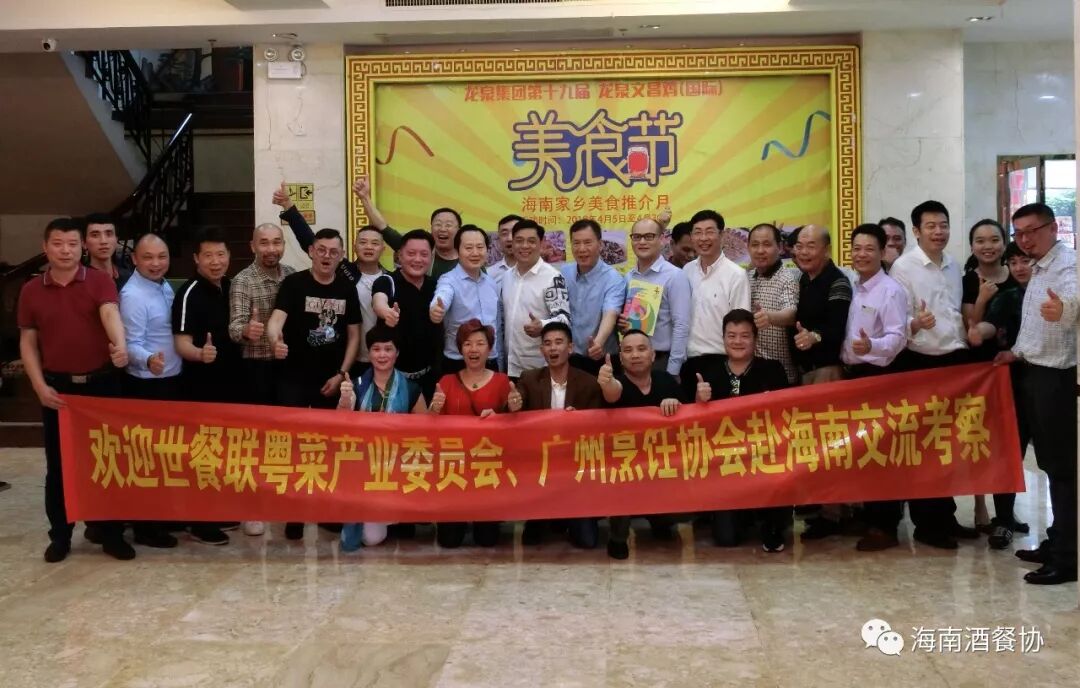 4月19日下午,海南省酒店与餐饮行业协会联合海南龙泉人酒店管理集团有限公司在海口举办联谊活动,设宴接待了世界中餐业联合会粤菜产业委员会、广州烹饪协会组织的交流考察团。考察团由团长:世餐联粤菜产业委员会主席、世界厨皇协会创会主席、广州烹饪协会会长梁日东;副团长广州上渡海鲜酒家董事长伍伟桐、广州兴辉美食董事长陈锦荣、广州富盈饮食有限公司董事长杨志毅带队,一行29人组成。中国饭店协会副监事长、海南省酒店与餐饮行业协会执行会长陈恒,海南省酒店与餐饮行业协会理事长单位代表、海南龙泉人酒店管理集团有限公司运营综合部经理陈颖信,海南省酒店与餐饮行业协会常务理事、海口君华海逸酒店总经理肖辉生,珠海兢业农牧科技发展有限公司张胜立董事长等人参加此次联谊。