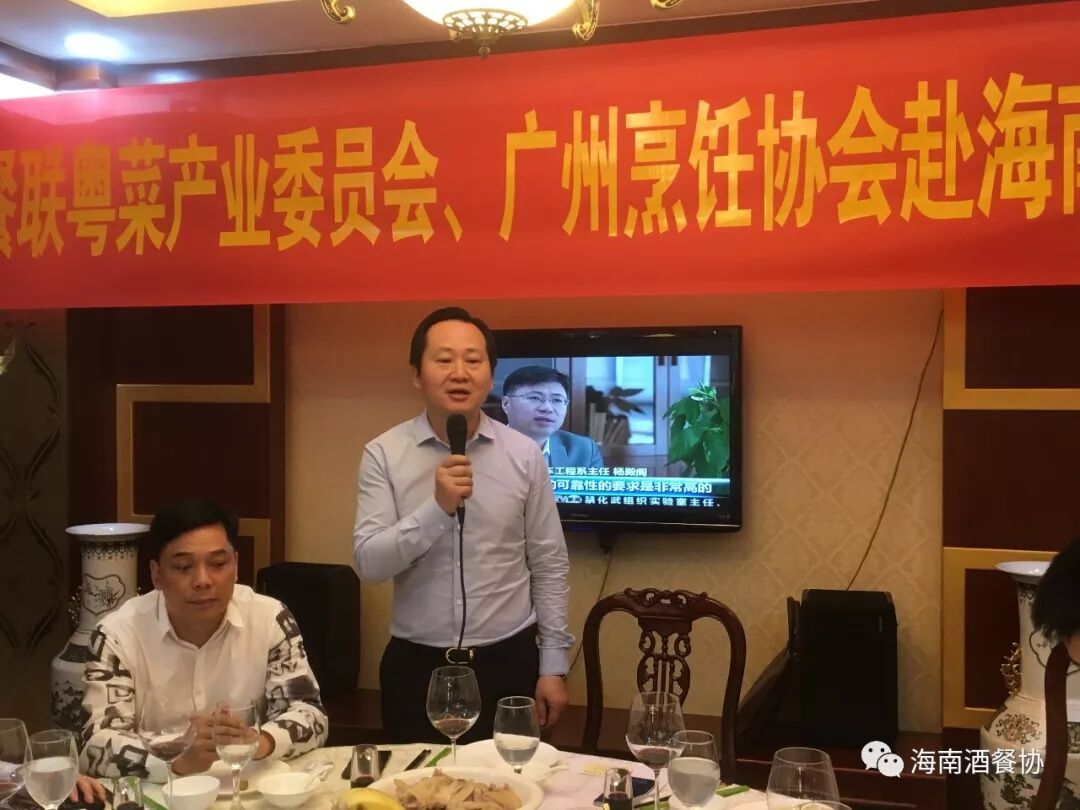 宴前,陈恒执行会长发表热情洋溢的讲话,向远道而来的世界中餐业联合会粤菜产业委员会、广州烹饪协会考察团表示热烈的欢迎,同时向考察团一行介绍了我省内行业发展状况及前景展望,希望藉此联谊之机搭建琼粤双方交流与合作平台。世餐联粤菜产业委员会、广州烹饪协会考察团全体成员对本次交流联谊安排表示衷心的感谢。