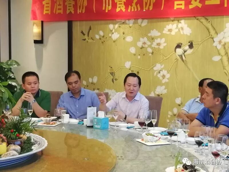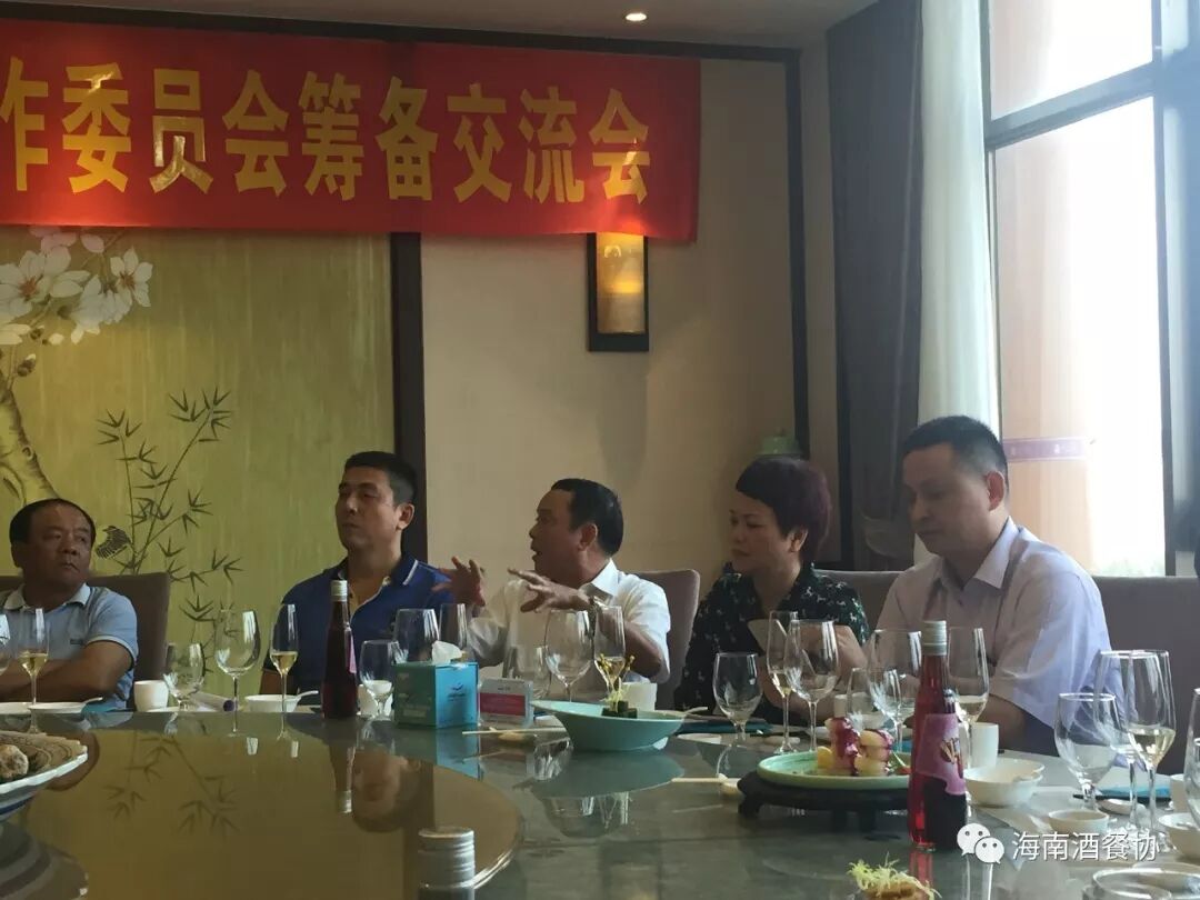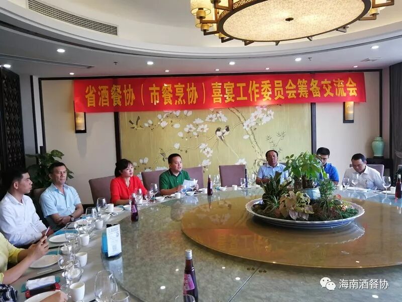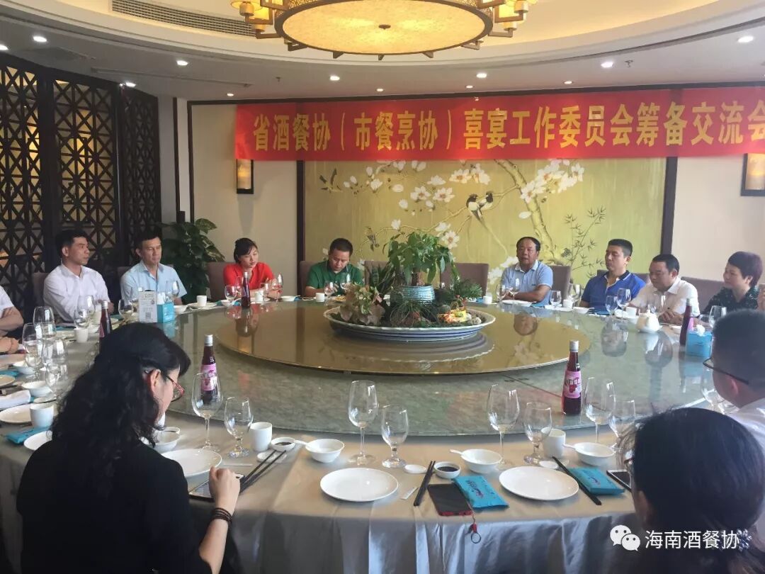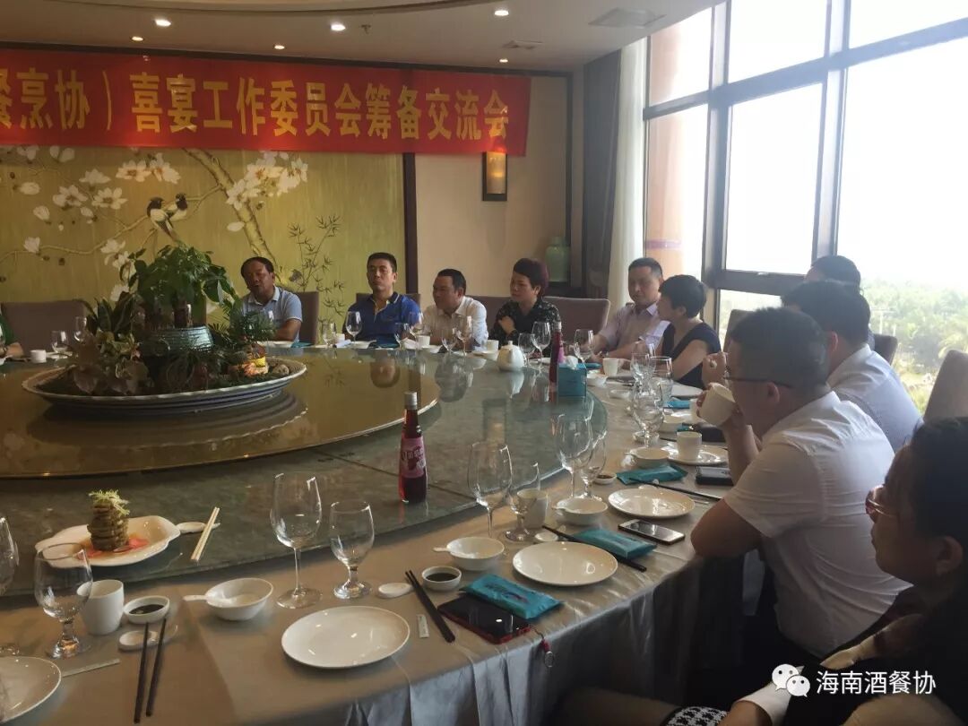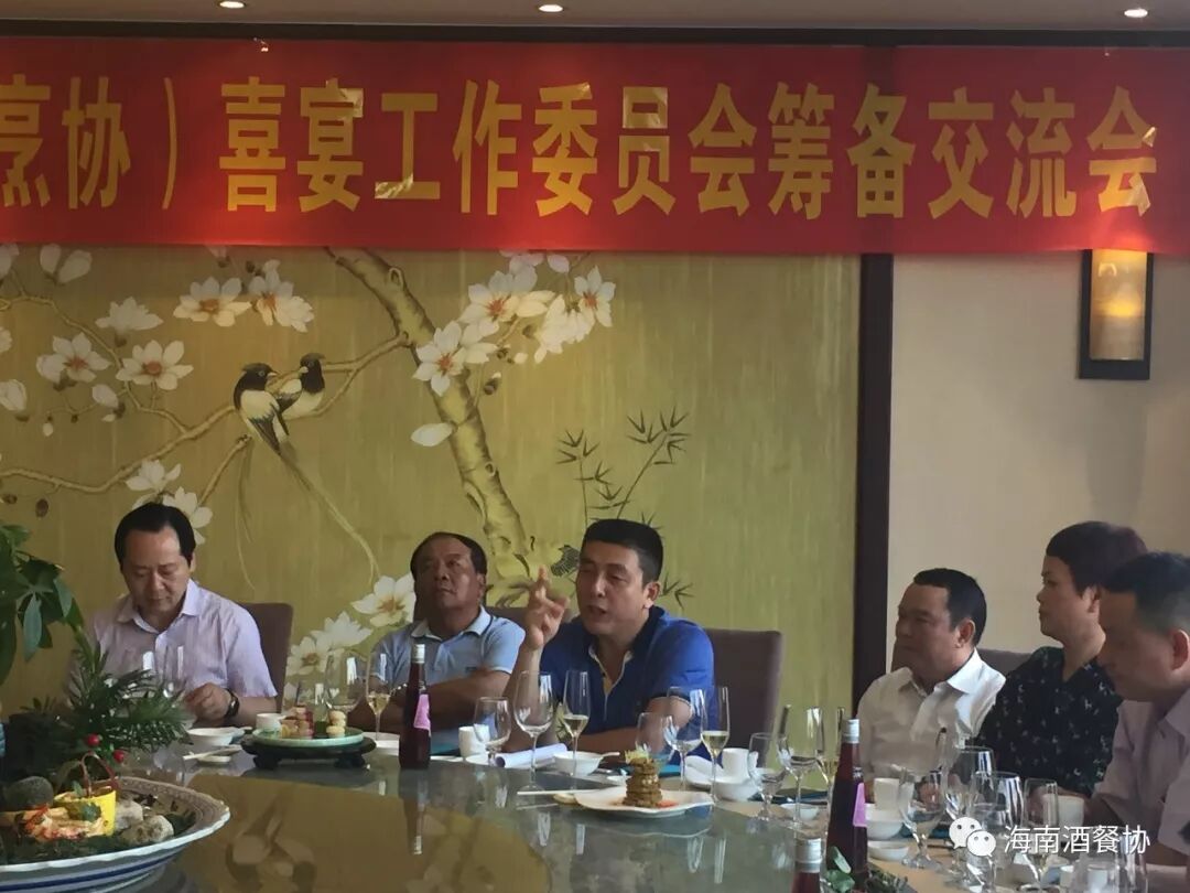 4月2日下午,省酒餐协(市餐烹协)在欢乐海岸美食联盟召开“省酒餐协(市餐烹协)喜宴工作委员会筹备交流会”。省酒餐协执行会长陈恒,省酒餐协主席市餐烹协会长、海南新宝岛餐饮管理有限公司(欢乐海岸美食联盟)总经理林壮森,省酒餐协主席团主席海南满福隆酒楼有限公司总经理王友胜,省酒餐协副会长龙泉集团监事长林健、海口粤菜王酒家董事总经理孟静雯、海南壹号公馆酒楼总经理赵燕秀 、海南瑞华海鲜酒楼总经理黄敏、 秘书长陈刚,海南大院总经理周华忠、海南琼菜王总经理伍志伟、海口宝发胜意酒店总经理杨志勇、皇马假日大酒店中餐厅餐饮总监洪丽霞、海南荷泰酒店投资管理有限公司运营总经理李泱燃、海南鑫源温泉大酒店总经理助理慕容朝洁、海口香江国际温泉大酒店副总黎玉珠、海南三厨新海府餐饮有限公司副总王和胜、海口鲁能希尔顿酒店会议销售总监蔡丹、 海南君华海逸酒店餐饮总监陈泉、 海口黄金海景大酒店餐饮总监吴玉玲、河北沙城庄园葡萄酒有限公司主任杨建光等二十多家企业参加会议。
