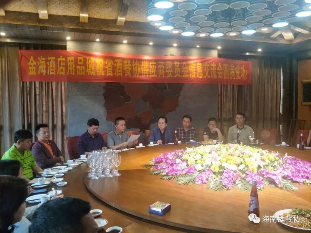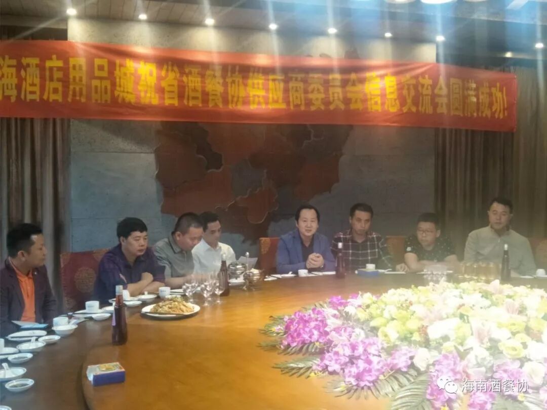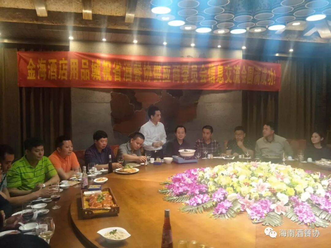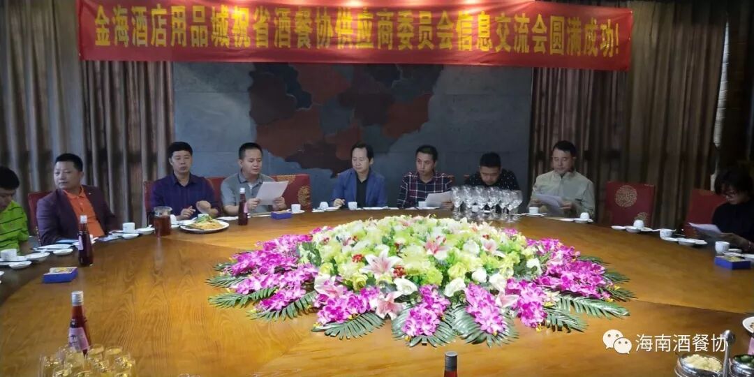 2018年3月24日下午,“省酒店与餐饮行业协会采购供应商委员会信息交流会”在海南大院圆满举行。省酒餐协执行会长陈恒,省酒餐协主席团主席:海南金海酒店用品城发展有限公司董事长黄文奕(采供委执行主席)、海口金辉豪商业管理有限公司总经理王豪(采供委副主席)、海南喜路来服饰(集团)有限公司董事长谭理仁(采供委副主席)、海南海岛雨林酒店餐饮管理有限公司董事长张根良(环境艺术委员会主任),省酒餐协副会长:海口锦晟酒店用品批发市场有限公司总经理叶桂平(采供委副主席)、海南茗佳茗酒店用品公司总经理李业鹏(采供委副主席)、海南甬和久庄文化有限公司董事长胡晓君、海南盛利实业有限公司董事长刘胜利,省酒餐协副会长兼秘书长陈刚,兴业银行海甸二东路支行行长任玲,海南椰林炊烟食品有限公司董事长欧阳海英,海南金海酒店用品城发展有限公司总经理黄琼生,海南海营匠作处实业有限公司董事长杨育萍,海南绿色牧歌高新农业生物科技有限公司总经理赫英伟,海口佳利来酒店用品有限公司总经理邱耀民,海口龙华炉佳节能科技有限公司董事长袁明华,海口天天源厨具设备有限公司总经理莫朝祚,河北沙城庄园葡萄酒有限公司海南办事处主任杨建光,海南开泰东山羊产业有限公司副总何新,海南东宝贸易有限公司副总蔡笃军,海南海垦和牛生物科技有限公司副总迟纲,海南君木投资股份有限公司总经理杨雨晴,海南新意农业旅游开发有限公司主任林妮佳,广东灵能新能源科技有限公司海南办事处主任谢康萍,省酒餐协副秘书长陆兵等三十余家采购供应商委员会的成员参加了会议。