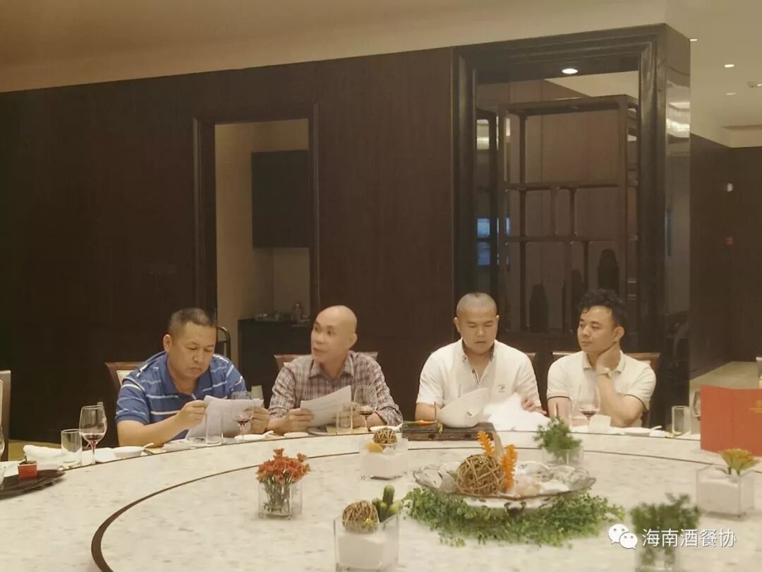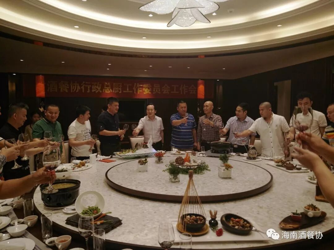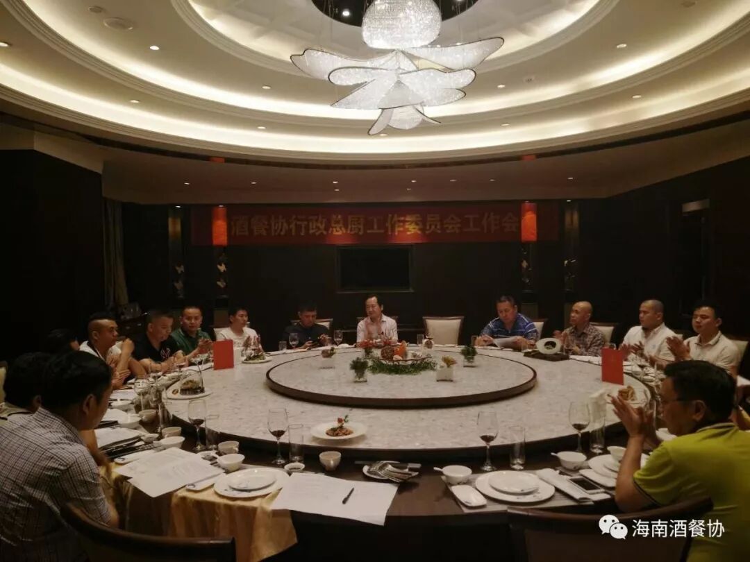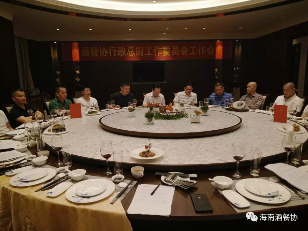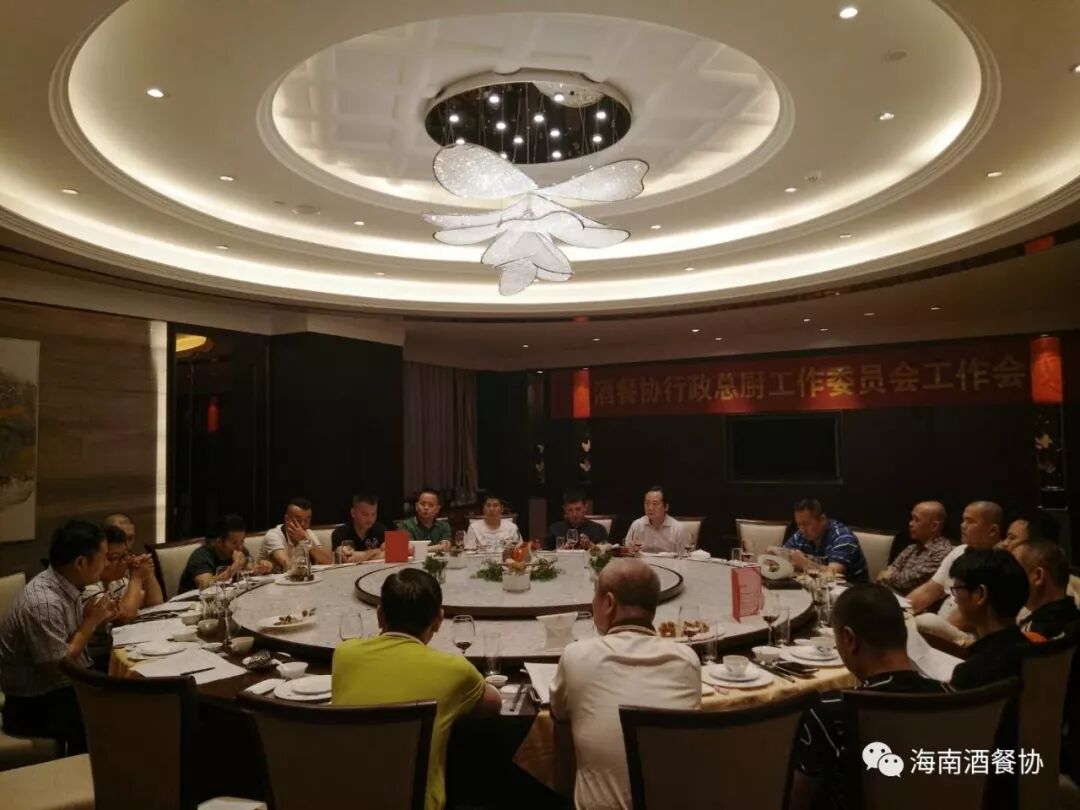 2018年3月18日下午,“省酒店与餐饮行业协会行政总厨工作委员会工作会议”在海南迎宾馆召开。省酒餐协执行会长陈恒,省酒餐协主席团主席、省酒餐协行政总厨工作委员会主任、海南海航迎宾馆董事长陈松,省酒餐协副会长、海南顺腾贸易有限公司董事长刘晋玮,省酒餐协副会长兼秘书长陈刚,省酒餐协总厨委名誉主任、三亚喜来登度假酒店中餐行政总厨李学深,省酒餐协总厨委执行主任:海口天佑大酒店行政总厨张光平、海口海航希尔顿行政总厨郑国勇、三亚亚龙湾迎宾馆中餐行政总厨邢涛、三亚国光豪生度假酒店餐饮运营总监丁来科,省酒餐协总厨委秘书长、海南鑫源温泉大酒店行政总厨吴盛群,省酒餐协总厨委副秘书长:海南省技师学院食品工程系负责人陈善渊、三亚琼州风味园销售总监郑祖全,省酒餐协总厨委执委:海口康年皇冠花园酒店行政总厨覃忠明、海口明光大酒店行政总厨史振儒、海口红燕堂大酒店行政总厨韩桐衍、海口万豪酒店中餐行政总厨阮仲孟、海口香格里拉大酒中餐行政总厨王天驰、鼎宴海鲜酒楼行政总厨马海明、十八碗浏阳蒸菜行政总厨朱豪、琼海味道总经理薛毓行等二十多家酒店餐饮行政总厨参加了会议。