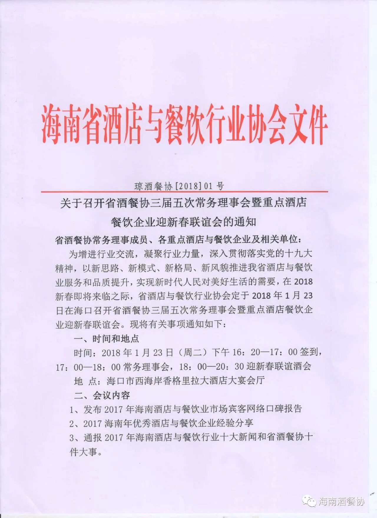 关于召开省酒餐协三届五次常务理事会暨重点酒店餐饮企业迎新春联谊会的通知