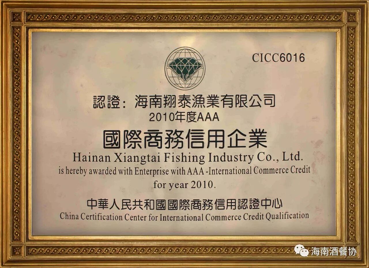 翔泰渔业始终以品质和信誉为根本,凭借完整的产业链条、卓越的品牌影响力和科技创新能力,公司先后通过了国家检验检疫局出口食品厂卫生注册和输美水产品HACCP认证,欧盟水产食品的注册认证ASC,BRC, BAP,GGAP,IFS,Kosher, ISO9001:2008, ISO14001-2004等国际认证。产品远销往美国、欧洲、俄罗斯等地区。