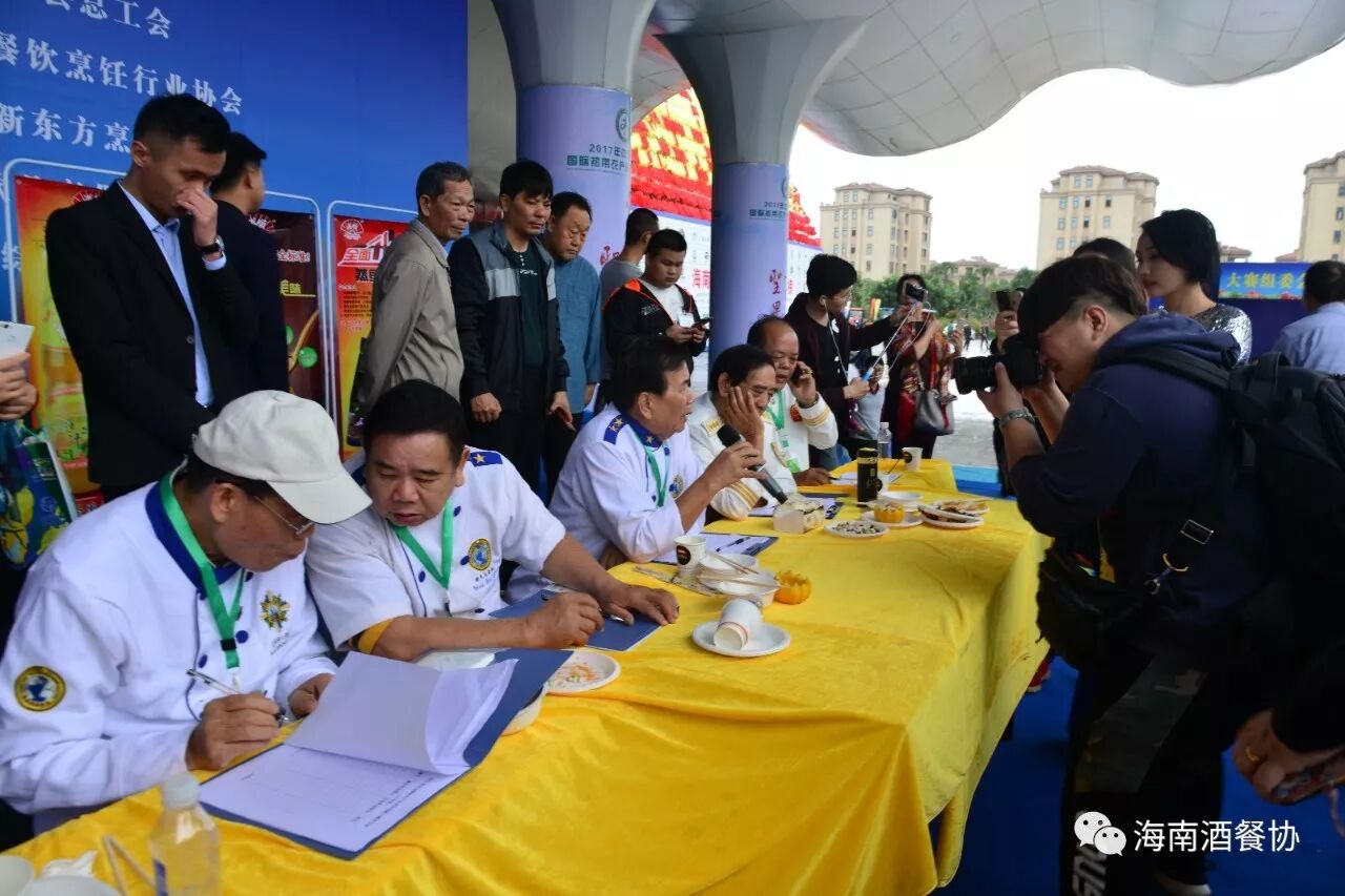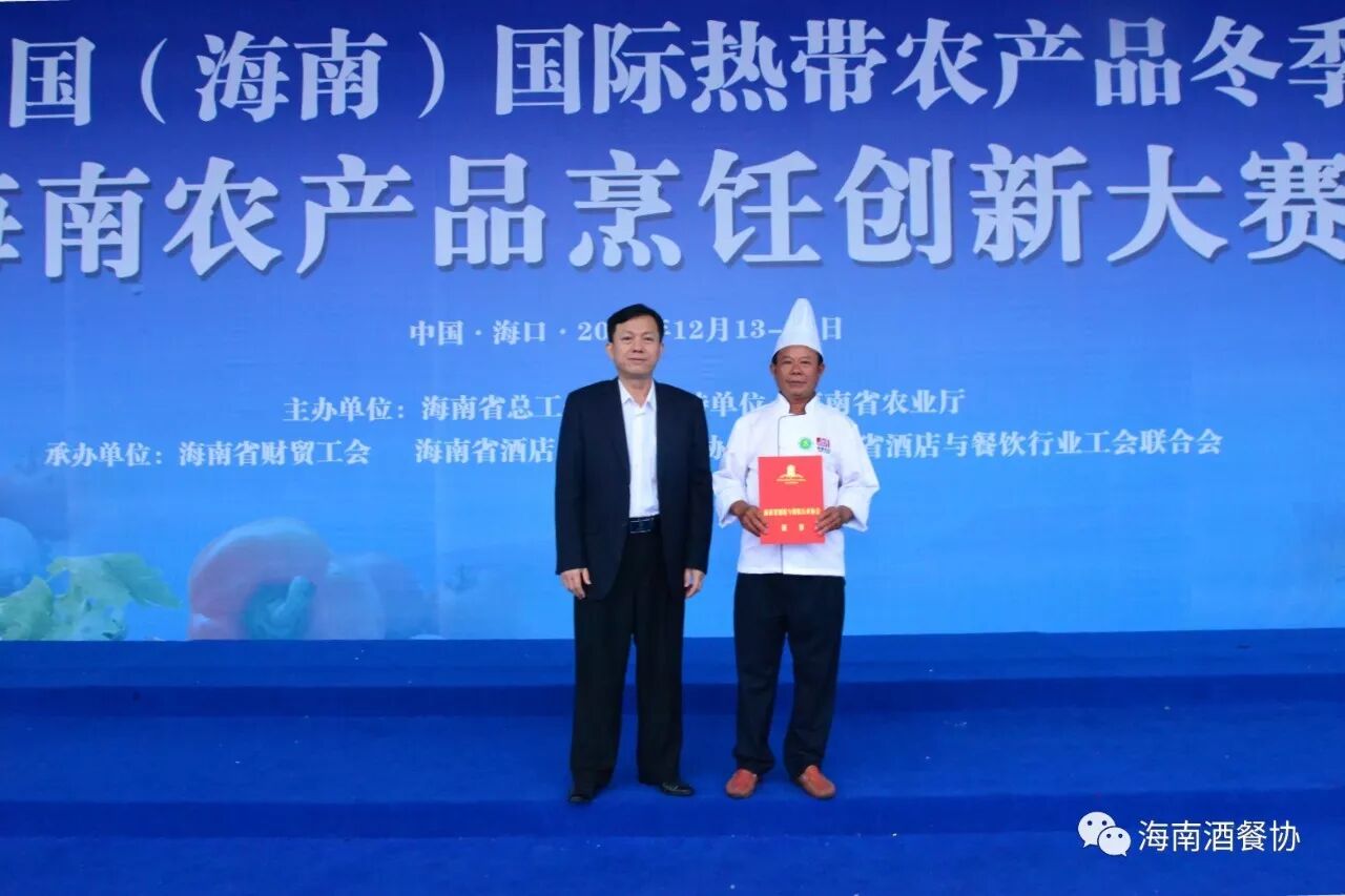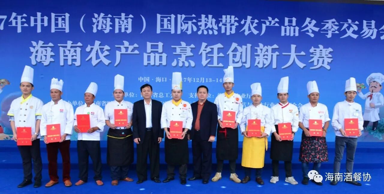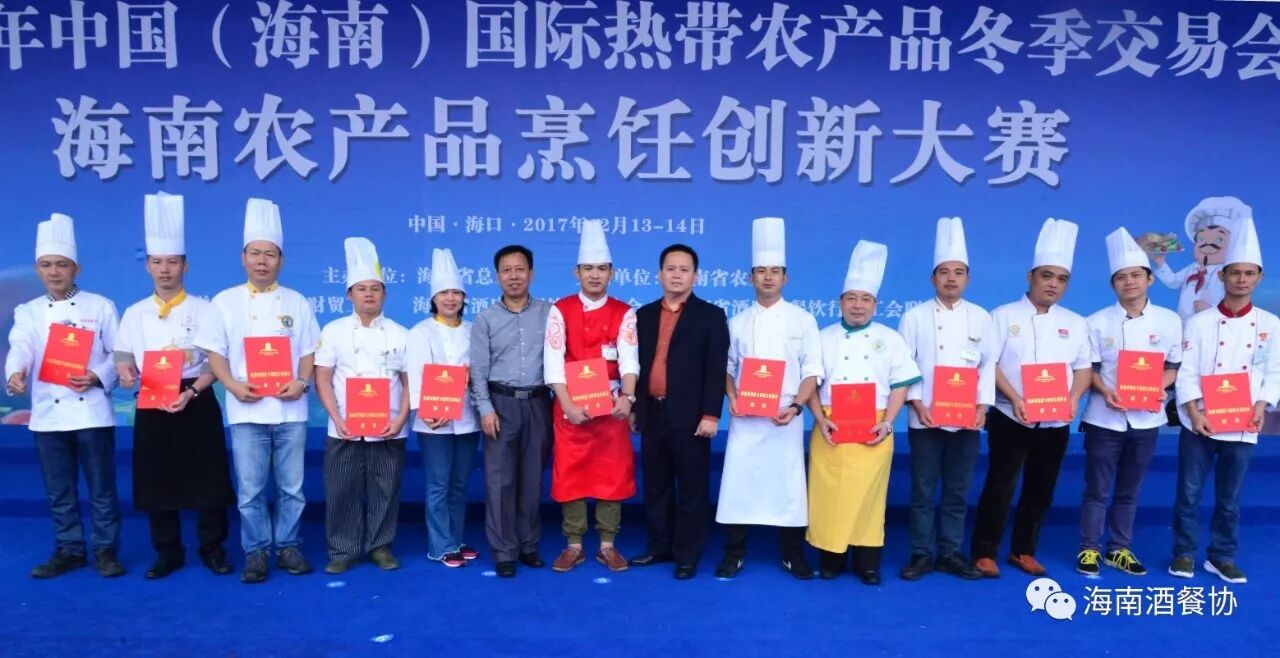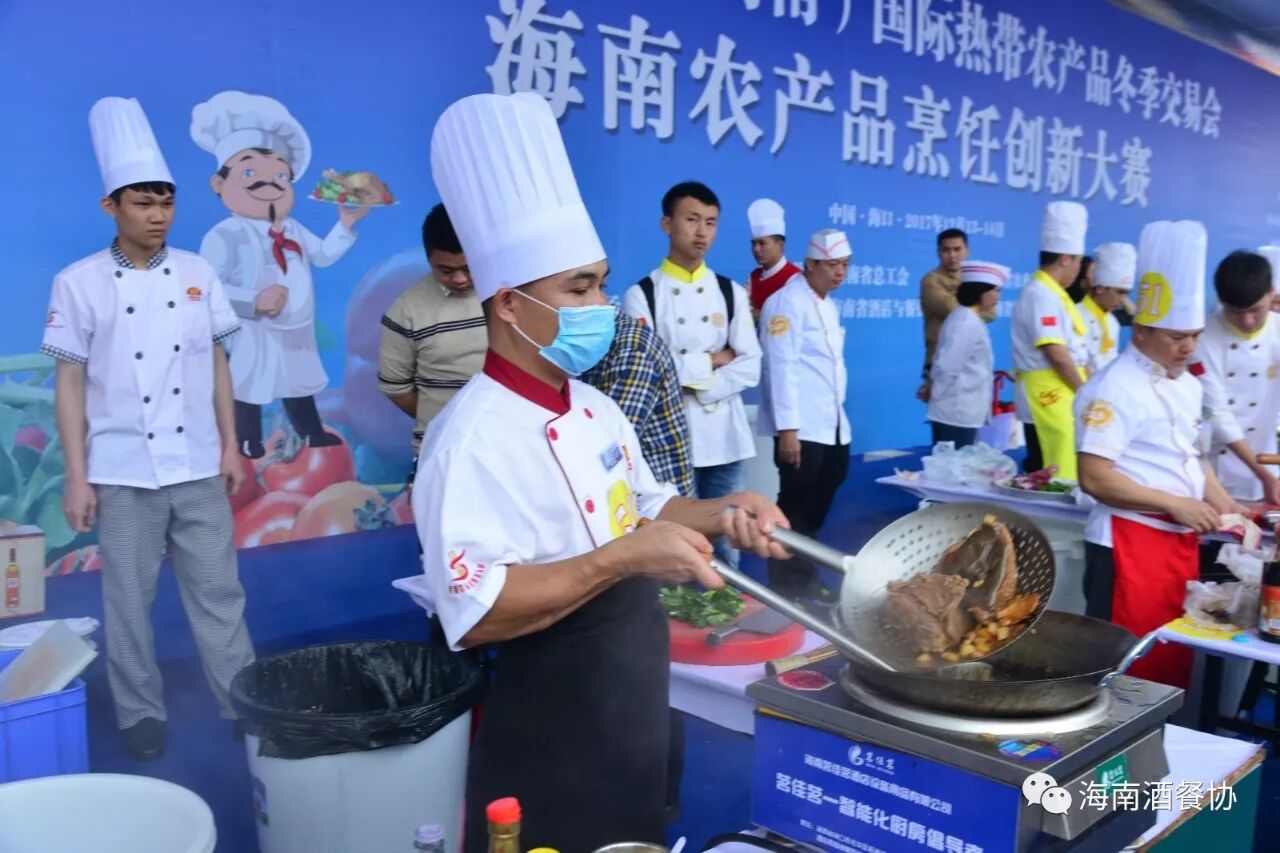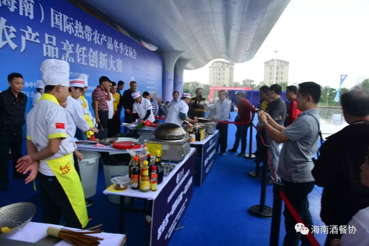 12月13-14日,作为今年冬交会重点活动之一的“海南农产品烹饪创新大赛”旗鼓上演。省人大常委会副主任、省总工会主席陈海波,省总工会党组书记、常务副主席王全,省人大常委会原秘书长、省酒店与餐饮行业协会第三届理事会会长、省绿色饭店工作委员会主任翟培基,省农业厅总农艺师黄正恩,省人力资源开发局副局长桂昕,省总工会经济技术部部长王裕明,省财贸工会主席吕亚平,省人力资源开发局职业技能鉴定处处长李克强,海南广播电视总台影视综艺频道总监王适基,省酒店与餐饮行业协会执行会长、省酒店与餐饮行业工会联合会主席陈恒,省烹饪协会会长陈建胜等领导出席开赛仪式,特邀嘉宾评委唐人志、庄裕伦、何子桂、蔡汝春、吴日辉等五位中国烹饪大师为大赛专业赛作现场点评,吴盛群、陈明导等两位中国烹饪大师为大赛家庭赛作现场点评。