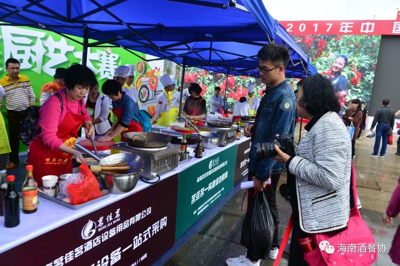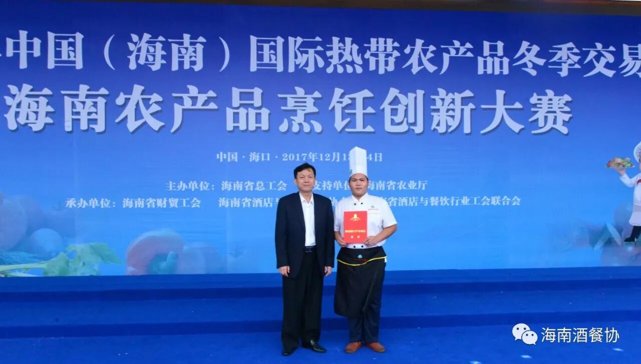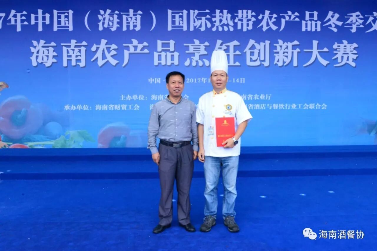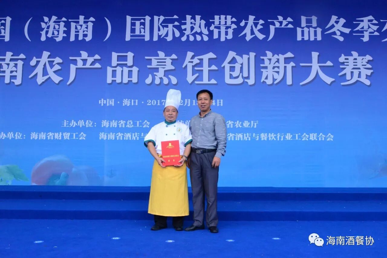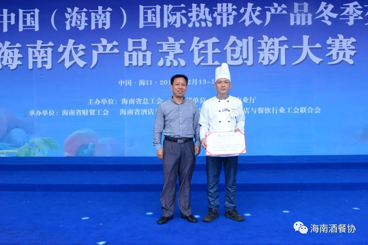 12月13-14日,作为今年冬交会重点活动之一的“海南农产品烹饪创新大赛”旗鼓上演。省人大常委会副主任、省总工会主席陈海波,省总工会党组书记、常务副主席王全,省人大常委会原秘书长、省酒店与餐饮行业协会第三届理事会会长、省绿色饭店工作委员会主任翟培基,省农业厅总农艺师黄正恩,省人力资源开发局副局长桂昕,省总工会经济技术部部长王裕明,省财贸工会主席吕亚平,省人力资源开发局职业技能鉴定处处长李克强,海南广播电视总台影视综艺频道总监王适基,省酒店与餐饮行业协会执行会长、省酒店与餐饮行业工会联合会主席陈恒,省烹饪协会会长陈建胜等领导出席开赛仪式,特邀嘉宾评委唐人志、庄裕伦、何子桂、蔡汝春、吴日辉等五位中国烹饪大师为大赛专业赛作现场点评,吴盛群、陈明导等两位中国烹饪大师为大赛家庭赛作现场点评。
