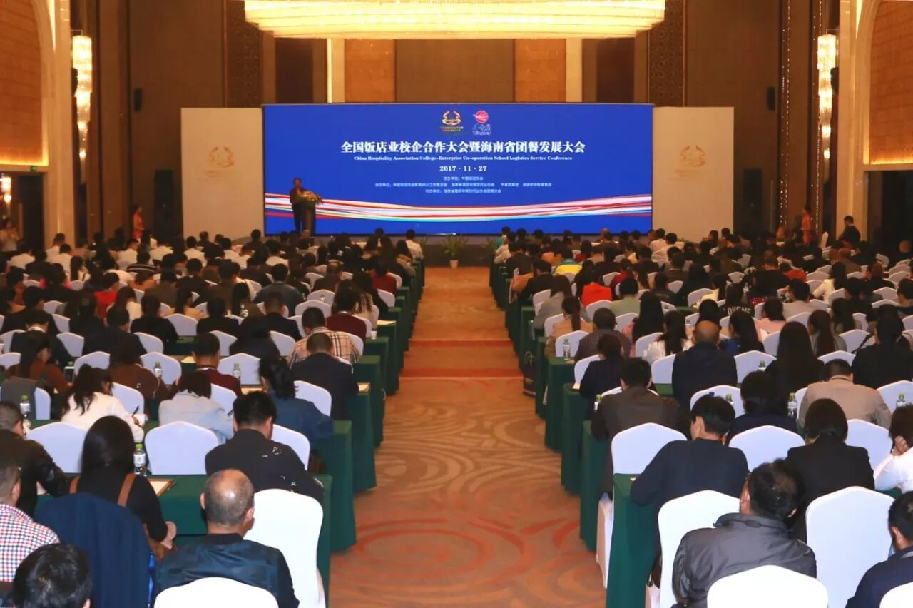为贯彻落实《国务院关于大力发展职业教育决定》和十九大报告“实施食品安全战略,让人民吃得放心”的健康中国战略精神,深化和完善院校与饭店行业校企合作的产学研合作机制,促进校企合作在饭店业与院校之间健康有序发展,也为引领团餐业主动适应新常态,全方位整合团餐行业全产业链优势资源,探索新形式下团餐的变革创新与未来发展战略模式,11月27日下午,作为第二届中国国际饭店业大会重要活动的“全国校企合作暨海南团餐发展大会”在海口星海湾豪生大酒店天津厅召开。中国饭店协会副会长张景富、海南省酒店与餐饮行业协会副会长兼秘书长陈刚出席会议并作重要讲话,国内饭店业知名专家学者和企业家、学校后勤服务供应商代表、知名媒体人士及省内优秀团餐企业代表负责人等400余人参加了会议。会议由中国饭店协会主办,中国饭店协会教育培训工作委员会、海南省酒店与餐饮行业协会、千喜鹤集团、安徽新华教育集团承办,海南省酒店与餐饮行业协会团餐分会协办。