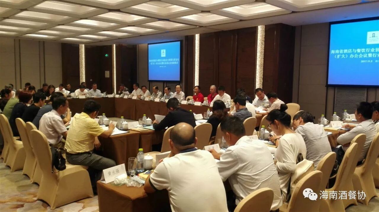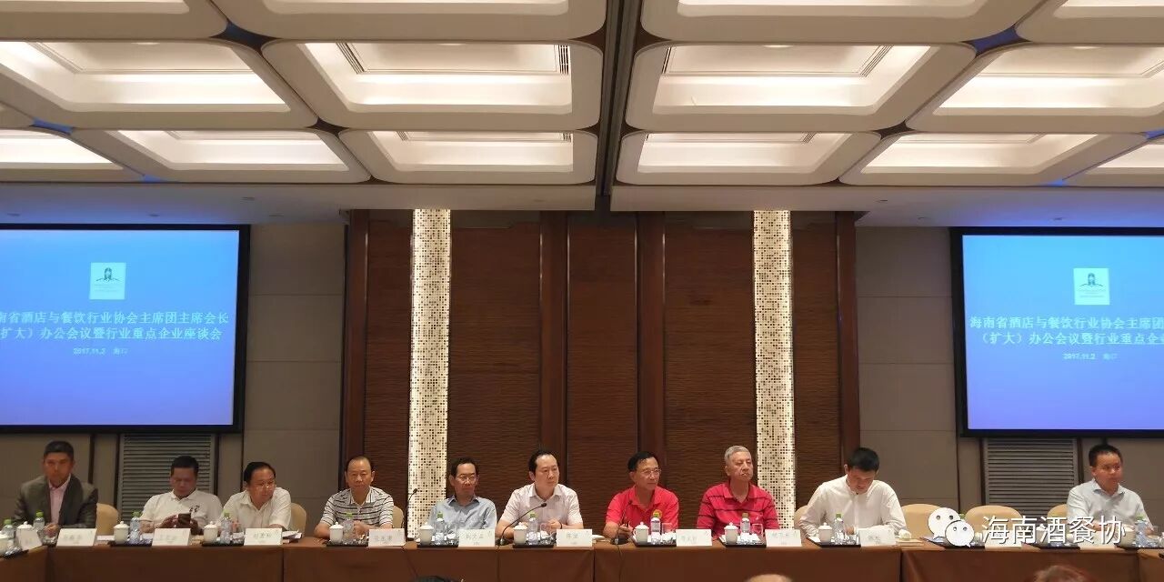 11月2日,“海南省酒店与餐饮行业协会主席团主席会长(扩大)办公会议暨行业重点企业座谈会”在海口华彩华邑酒店召开。省酒餐协理事长、海南龙泉集团有限公司董事长符史钦,省酒餐协执行会长陈恒,省酒餐协特邀顾问、海南省管理现代化研究会会长、南海经济技术研究院院长、著名管理专家、经济学家胡卫东,省酒餐协特邀顾问、人民网海南分公司总编刘文品及协会主席团主席、副会长、重点酒店与餐饮负责人等80余人出席会议。