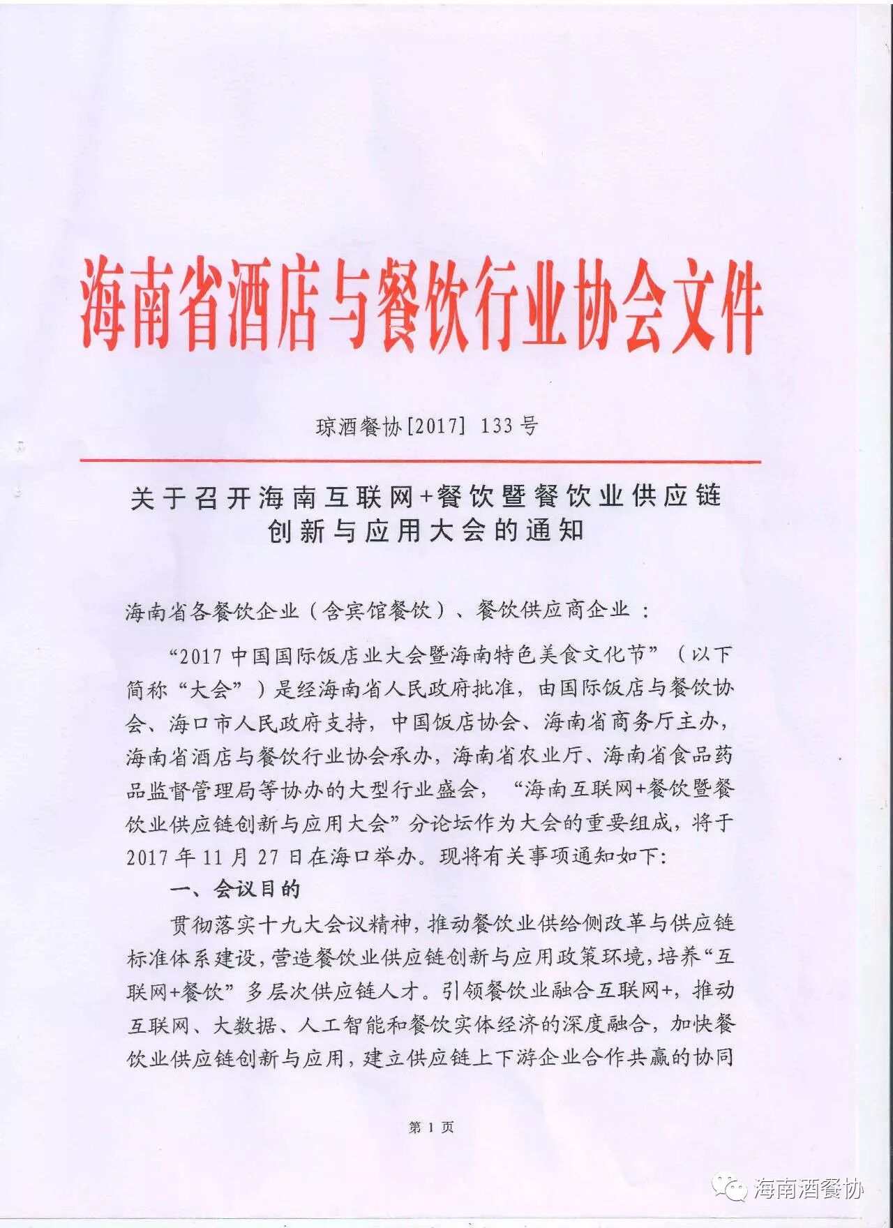 关于召开海南互联网+餐饮暨餐饮业供应链创新与应用大会的通知