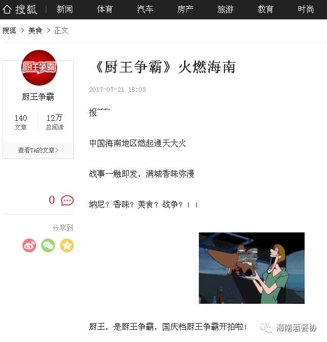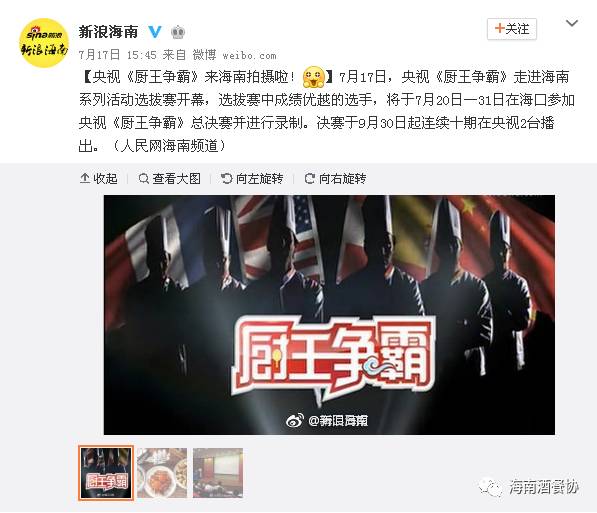 据悉,厨王争霸2017国庆档为给全国观众带来一场精彩的“视觉盛宴”,节目组将拍摄录制选在景色宜人的海南岛,顶级美食与顶尖厨师搭配绝美风景是本季厨王争霸的一大亮点。根据有关随机抽样调查反馈数据显示,全国观众对“美食+顶级厨艺的PK+点评”的模式好感度颇高,收视人群以25-54岁中高层次家庭人群为主,其中具有良好消费能力的社会白领及高层管理人员、离退休人员、美食爱好者及旅游爱好者对本期节目更加喜爱。此外,节目在录播的同时对海南特色食材、文昌鲁能希尔顿及海口万豪酒店等元素进行深度报道,大大提升了全国观众对海南特色食材与酒店餐饮的品牌认知度。豆果美食APP等合作伙伴设置相关专栏,通过图文、直播等形式,以海滨自然特色风光景观等海南元素为背景,为观众传播海南菜的制作技巧及海南菜的故事,在推广海南特色食材、海南特色菜的同时大大提升全国观众对海南靓丽风光的关注度。