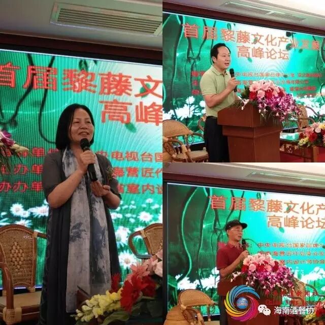此次高峰论坛由領导和嘉宾邢灵敏、吴世平、杨功全、陆胜平、林长武、叶兆安、杨庆勇、周少灵、胡彬、张夏先后致词。藤后国际董事长杨育萍女士致欢迎感谢词。她在致词中重点感谢海南省妇联的支持与厚爱,感谢各级政府领导和社会各界的支持关心,并表示不负众望,做强做大藤编事业,打造民族传统文化产品,以报答回馈社会。