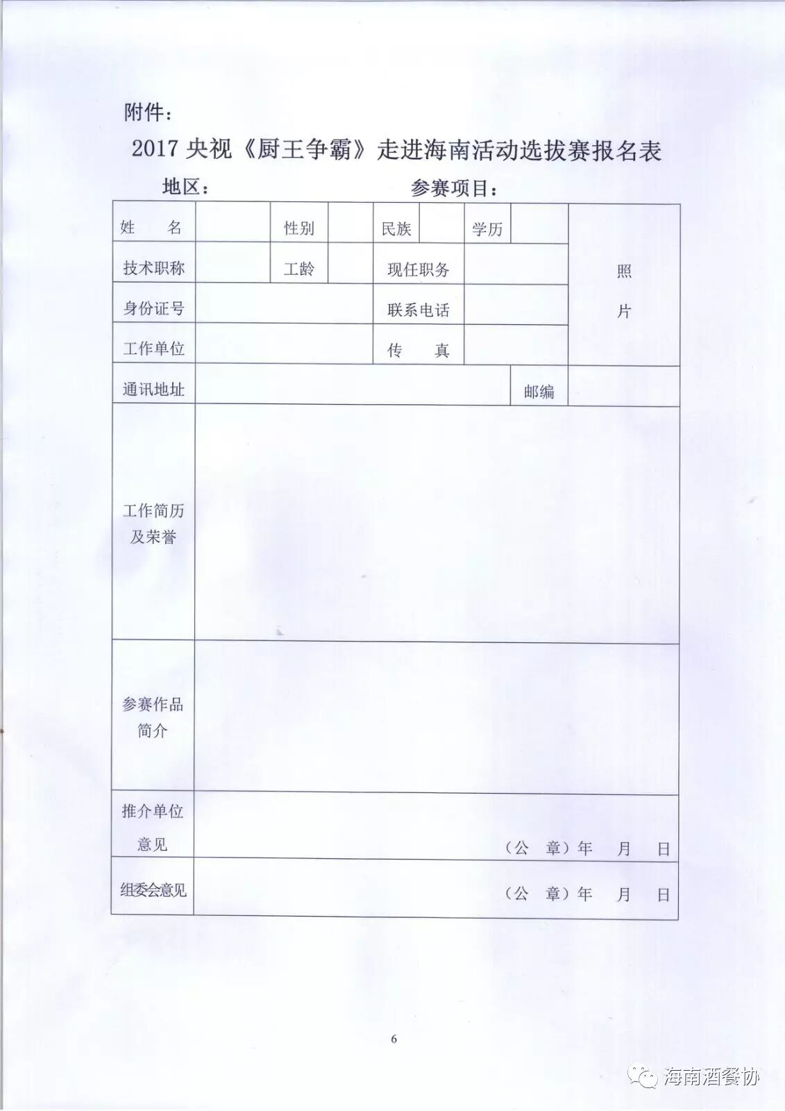 关于2017央视《厨王争霸》走进海南活动选拔赛报名的预备通知