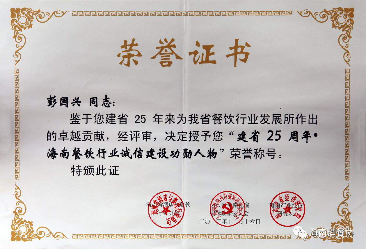 建省25周年•海南餐饮行业诚信建设功勋人物