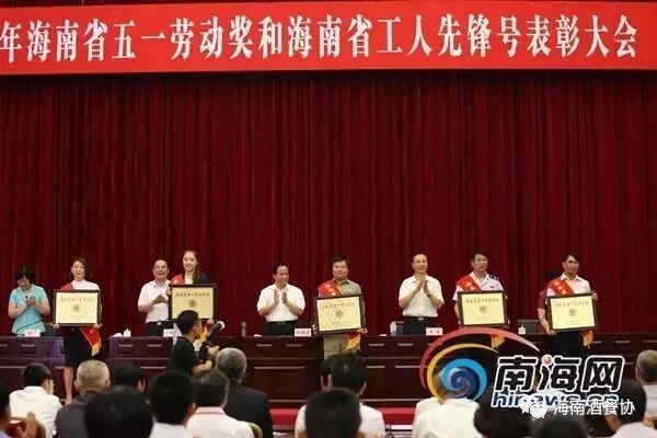 会上,海南龙泉集团有限公司获海南省五一劳动奖状,三亚亚龙湾喜来登度假酒店中餐行政总厨李学深同志、定安县餐饮烹饪协会秘书长罗敏同志获海南省五一劳动奖章。