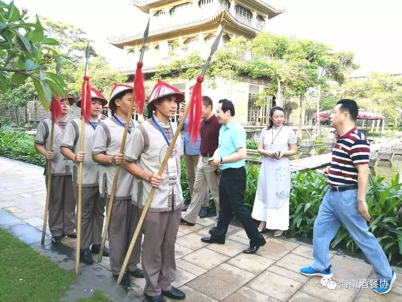 2017年4月20日下午,海南省酒店与餐饮行业协会一行走访参观副会长单位--海口鸿洲埃德瑞皇家园林酒店,感受“海口的紫禁城”,体验热带海岛上的皇族生活方式。省酒餐协名誉会长钟保家、执行会长陈恒、主席团主席刘凯强(三亚力合温德姆酒店总经理)、省酒餐协秘书长陈刚、副秘书长郑代旺、酒店部部长范莉莉,以及海口丽思卡尔顿总经理沈思墨、海口鲁能希尔顿酒店总经理孙金鹏、海南君华海逸酒店总经理肖辉生、海口星海湾豪生酒店总经理马蕴竹、海口康年皇冠花园酒店总经理陈斌、三亚中亚国际大酒店总经理陈海坚、海南佳捷连锁酒店集团总经理李许钗等十多家品牌酒店总经理共同参与了此次活动。