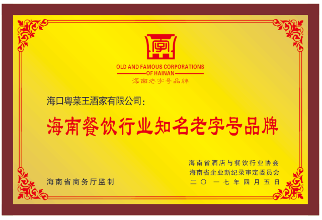 海口粤菜王酒家是一家正宗的老字号粤菜酒楼,位于海南省海口市龙华路繁华地段,经营面积2000多平方米,投入资金达1000多万元。