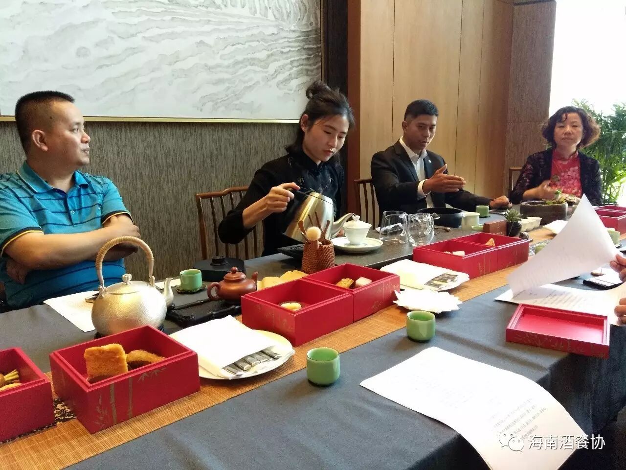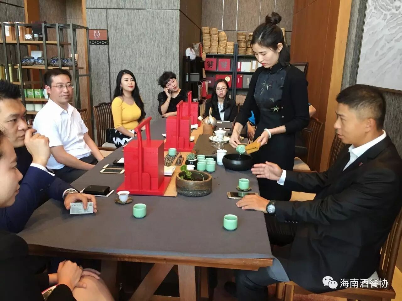 会前,省酒餐协会副会长、华邑酒店孙总在优雅的举茗邑—华邑酒店的特色商务与社交的私密会晤空间宴请省酒餐协与海口各家五星级酒店的营销总监们喝茶、闻香、听琴、品茶、介绍本酒店特色亮点,尽显华邑酒店待客之道。