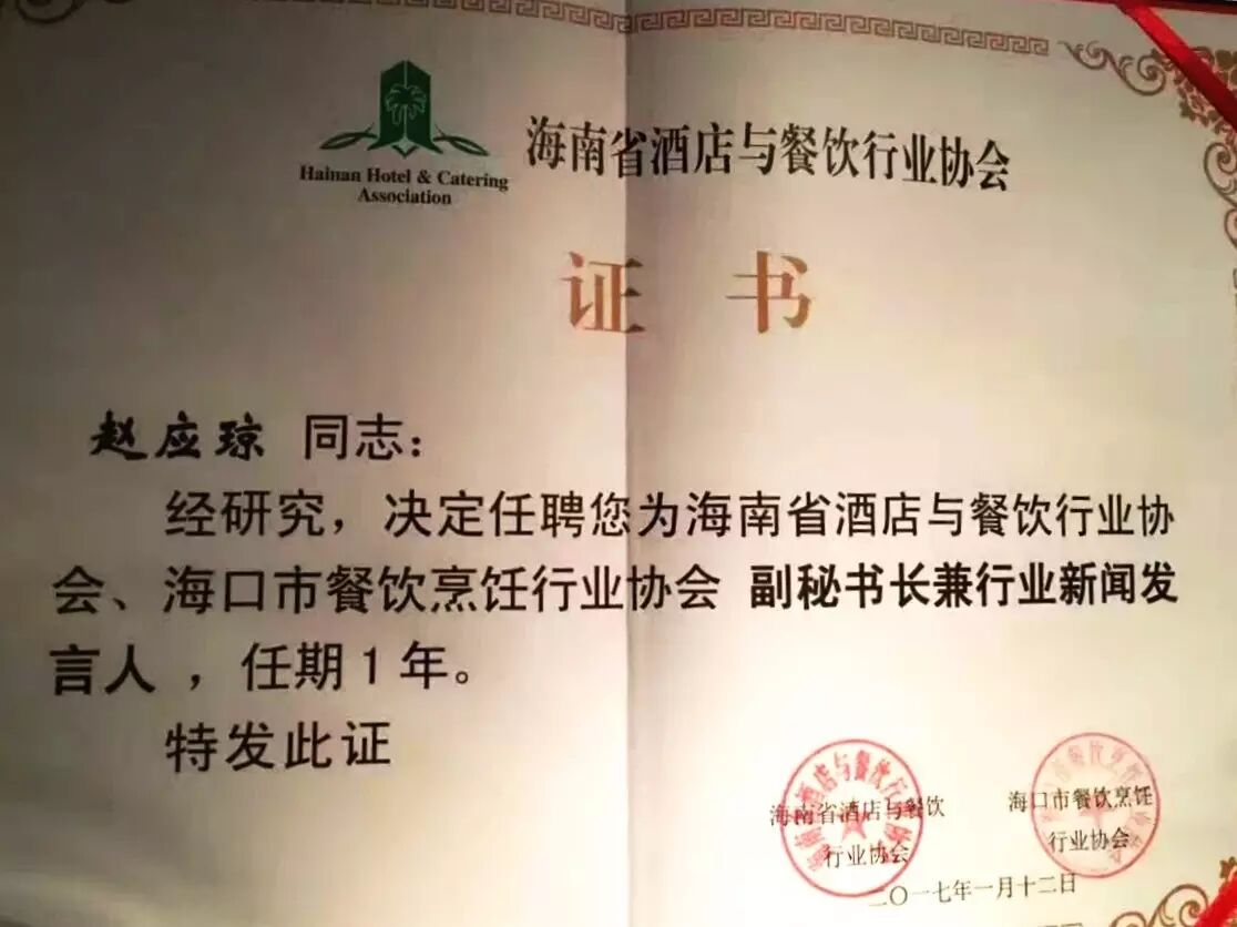 1月12日,“省酒餐协(市餐协)主席会长办公扩大会议暨迎新春联谊会”在欢乐海岸美食联盟召开。经研究,会上通过了《关于设立“海南省酒店与餐饮行业协会新闻发言人”的建议》,聘请海口电视台主持人赵应琼女士为“行业新闻发言人”。这是我省首位行业组织新闻发言人,我们将围绕“提供服务、反映诉求、规范行为”这一基本要求,积极探索建立适应社会主义市场经济体制,在符合行业组织发展规律上,提升行业影响力、会员凝聚力、社会公信力和自主发展能力,打造一个充满生机和活力的现代行业组织,为推动行业发展,经济繁荣、社会稳定做出应有贡献。