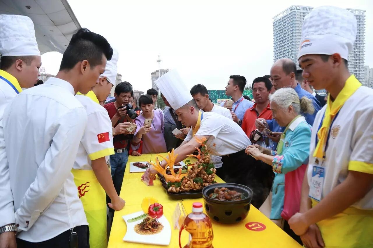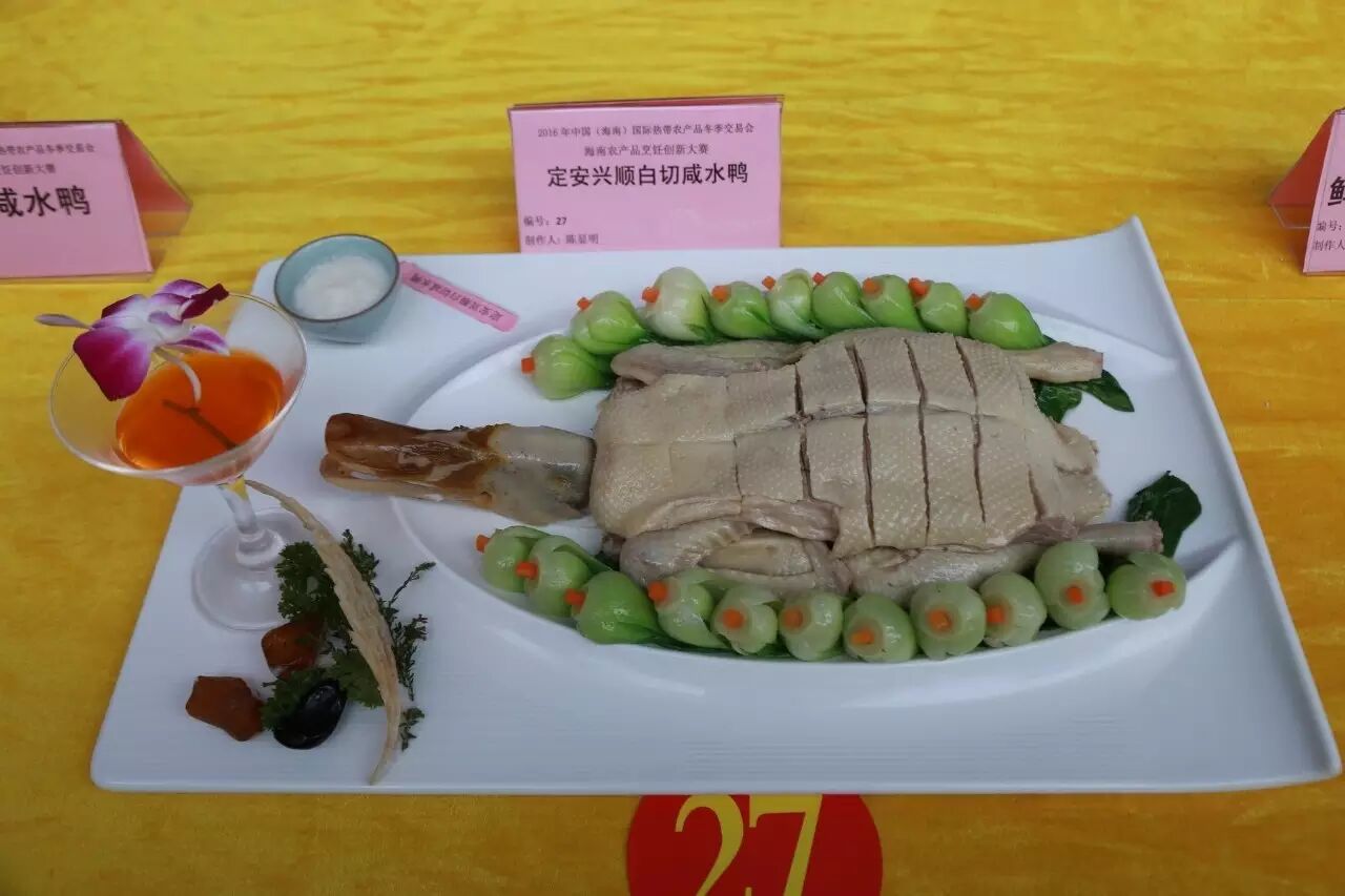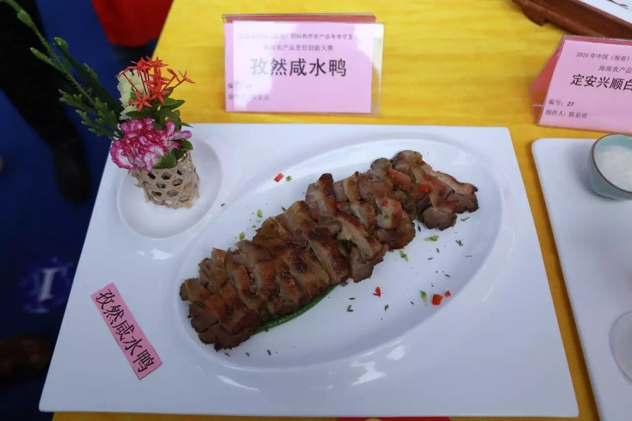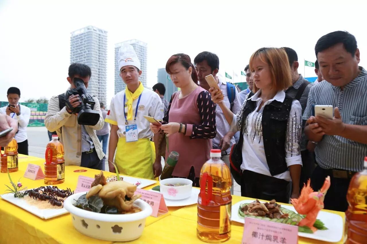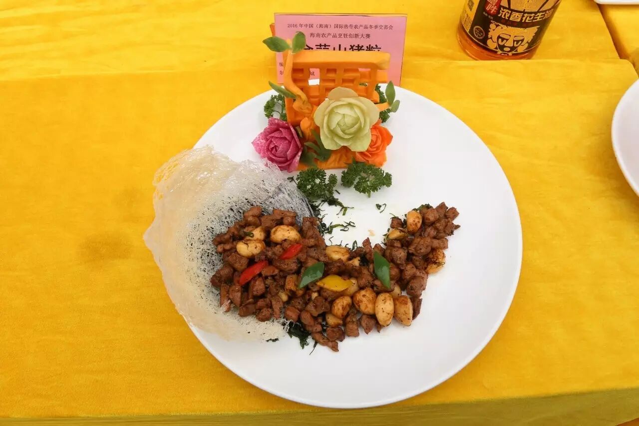 现场食材主料由海南东宝贸易有限公司提供的东宝野山猪、海南裕星河咸水鸭养殖专业合作社的演丰咸水鸭,现场调味品由东莞市港顺食品有限公司提供,用油由海南昂侯嘀农业旅游开发有限公司生产提供的“噜吽花生油”。