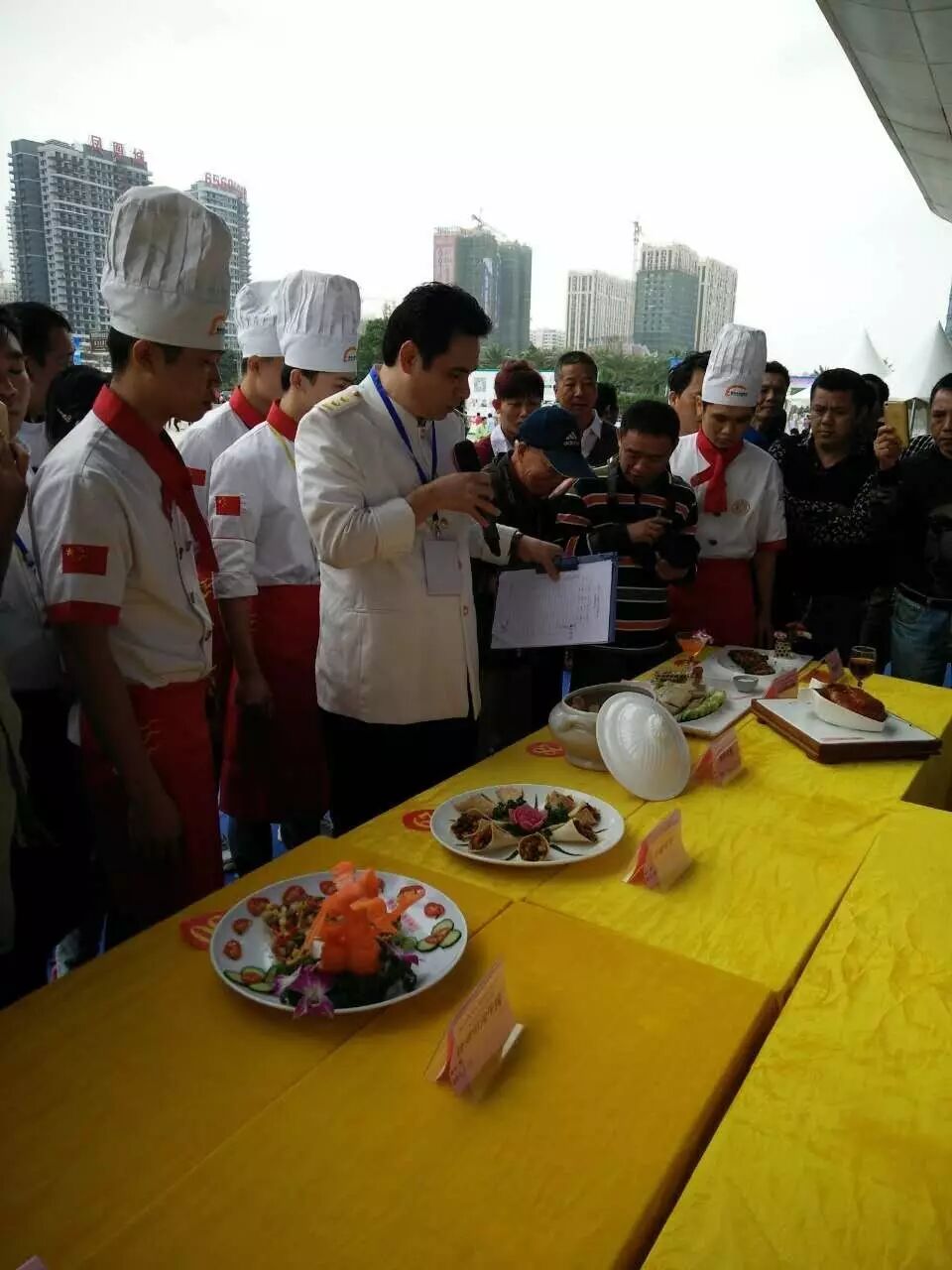 ▲庄裕伦、吴日辉、史李生三位中国烹饪大师为获得青年组银奖选手颁奖