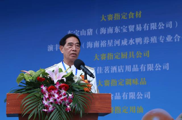 ▲海口鲁能希尔顿酒店中厨厨师长罗会新代表参赛选手发言