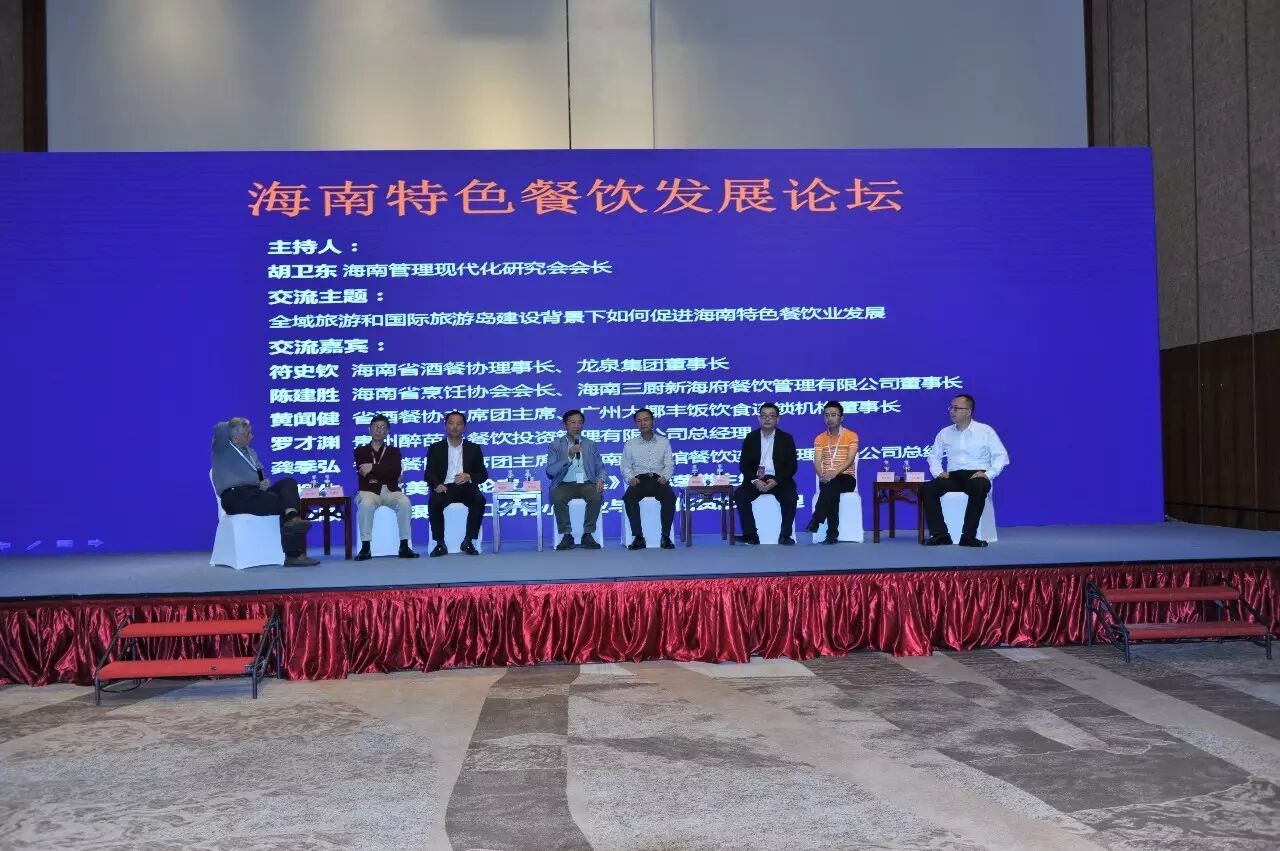 会议由省酒餐协理事长、龙泉集团董事长符史钦及海南管理现代化研究会会长胡卫东主持,与会代表围绕全域旅游和国际旅游岛建设背景下如何促进海南特色餐饮业发展进行了交流互动,并提出了意见和建议。
