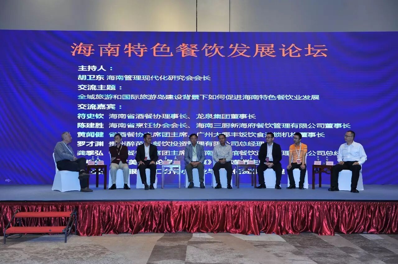 简单的茶歇后,海南省酒餐协理事长、龙泉集团董事长符史钦,海南省烹饪协会会长、海南三厨新海府餐饮管理有限公司董事长陈建胜,海南省酒餐协主席团主席、广州大椰丰饭饮食连锁机构董事长黄闻健,贵州老凯俚酸汤鱼总经理罗才渊,中国餐饮评论大师、著名美食评论家、《湘菜》杂志荣誉主编丁柳生,海南省酒餐协主席团主席、海南拾味馆餐饮连锁管理有限公司总经理龚季弘,王立顺等七位嘉宾和与会代表全域旅游和国际旅游岛建设背景下如何促进海南特色餐饮业发展在会上和大家进行了探讨,针对新常态下餐饮业的经营状况、困难问题、先进经验进行了深入交流。为海南特色餐饮业发展提供了新的思路。