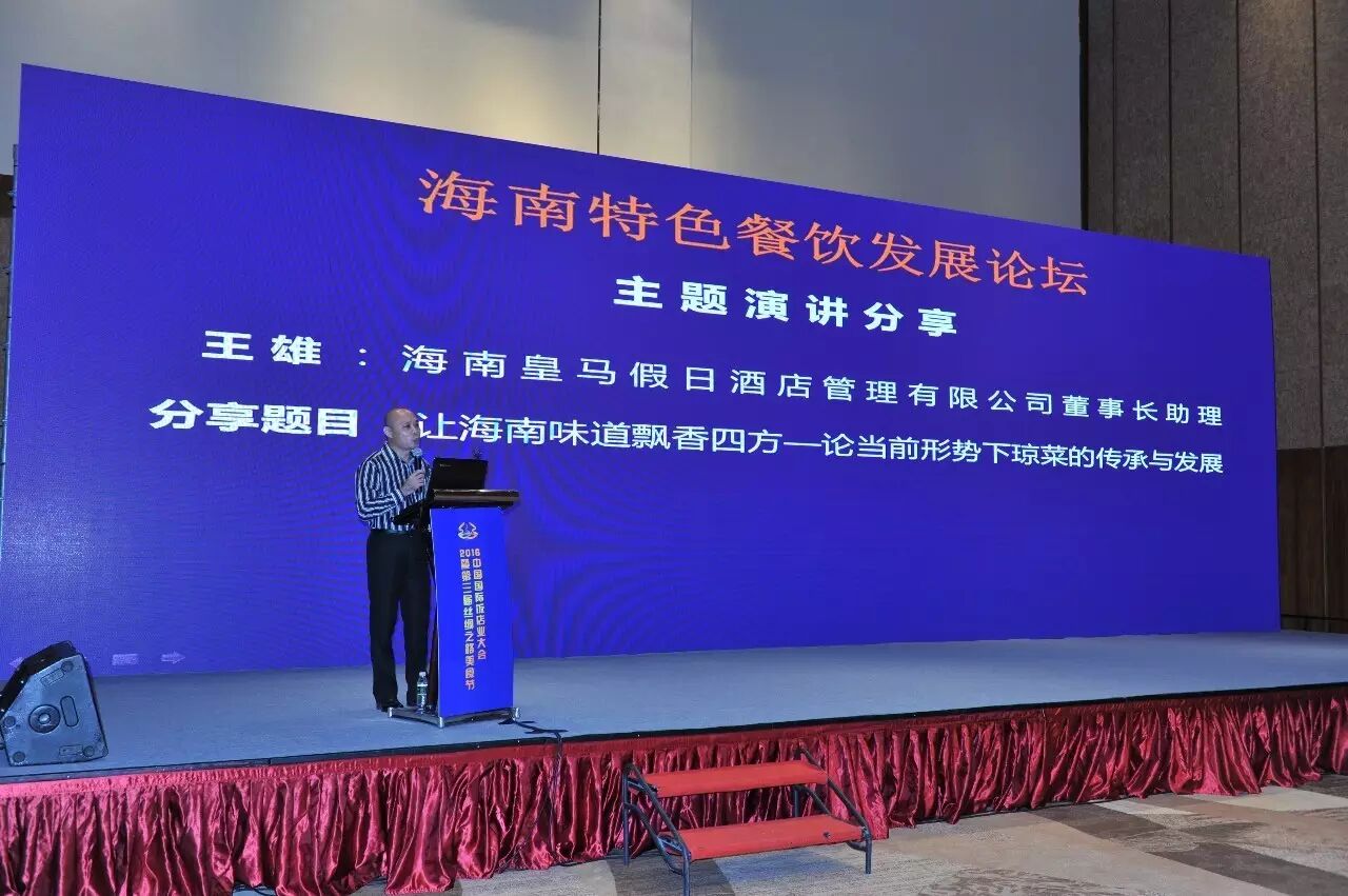 会议上,海南管理现代化研究会会长、知名经济学家胡卫东,对“如何认识特色餐饮在全域旅游建设中的地位和作用”为大家作了解读与分析;贵州醉苗乡餐饮投资管理有限公司董事长丁文建,中国餐饮学会会长、台湾著名烹饪大师沈松茂,海南椰语堂餐饮文化有限公司董事长赵玉明,海南皇马假日酒店管理有限公司董事长助理王雄与大家分享了本土餐饮文化应如何传承、发展的经验。