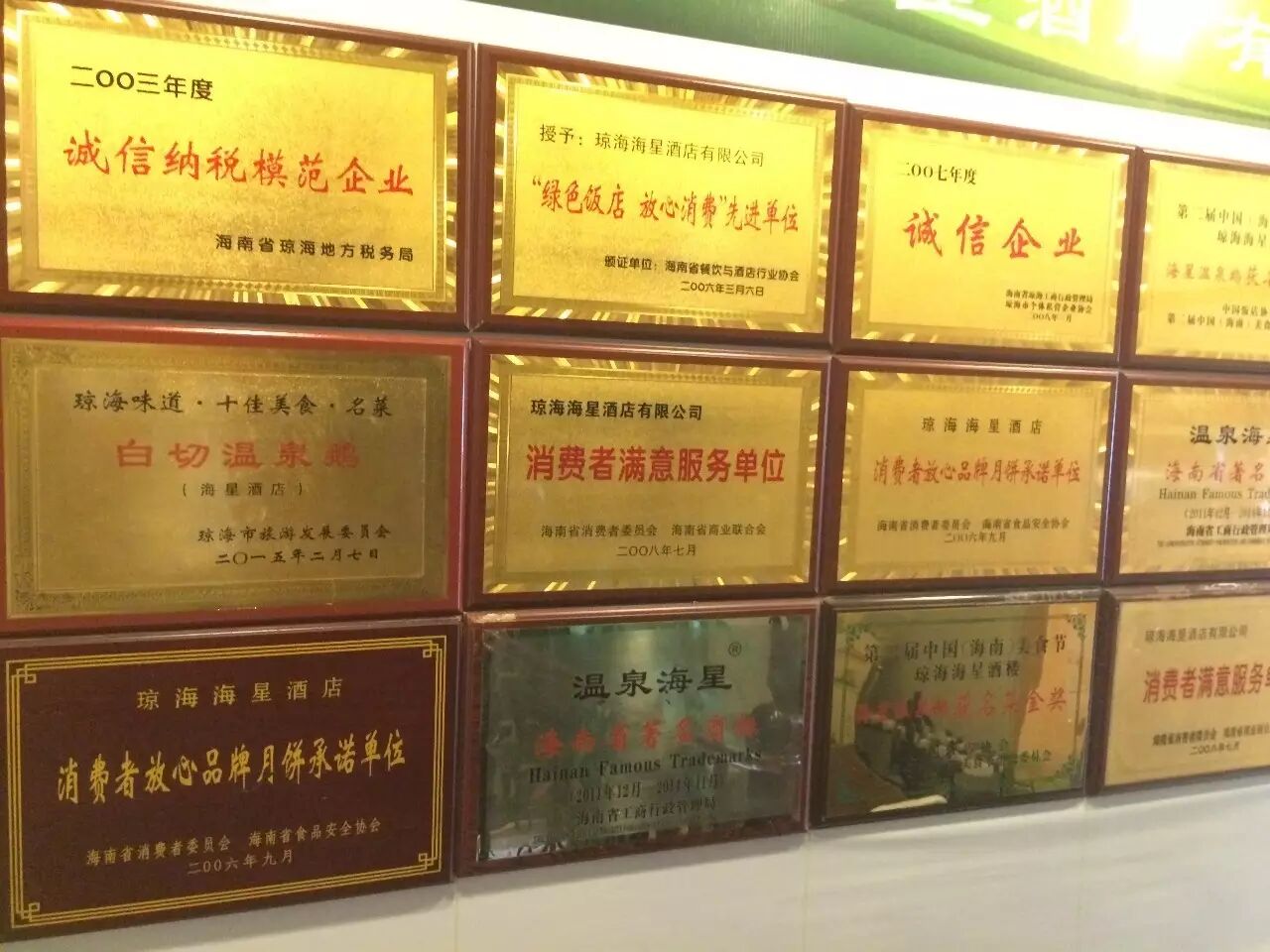 如今,海南华侨、港澳台同胞回乡,一定会到温泉海星鹅肉店品尝家乡的名食,以慰乡情。而“温泉鹅”作为每位顾客必尝的一道佳肴,品尝时佐以海南特有的野生桔子、辣椒、蒜蓉、姜汁、陈醋等佐料,其味道尤为鲜美,使顾客品尝后都赞好!回头客越来越多,生意越做越兴隆。1999年春,为了扩大业务,李海星先生在嘉积爱华西路建起了“温泉海星酒楼”,开创了“温泉鹅”品牌连锁店。并获得了“海南省品牌创建示范企业”、“十佳地方风味特色酒店”、“温泉海星”海南省著名商标、“绿色饭店放心消费酒店”、“消费者首选十佳接待餐饮名店”等多项殊荣。