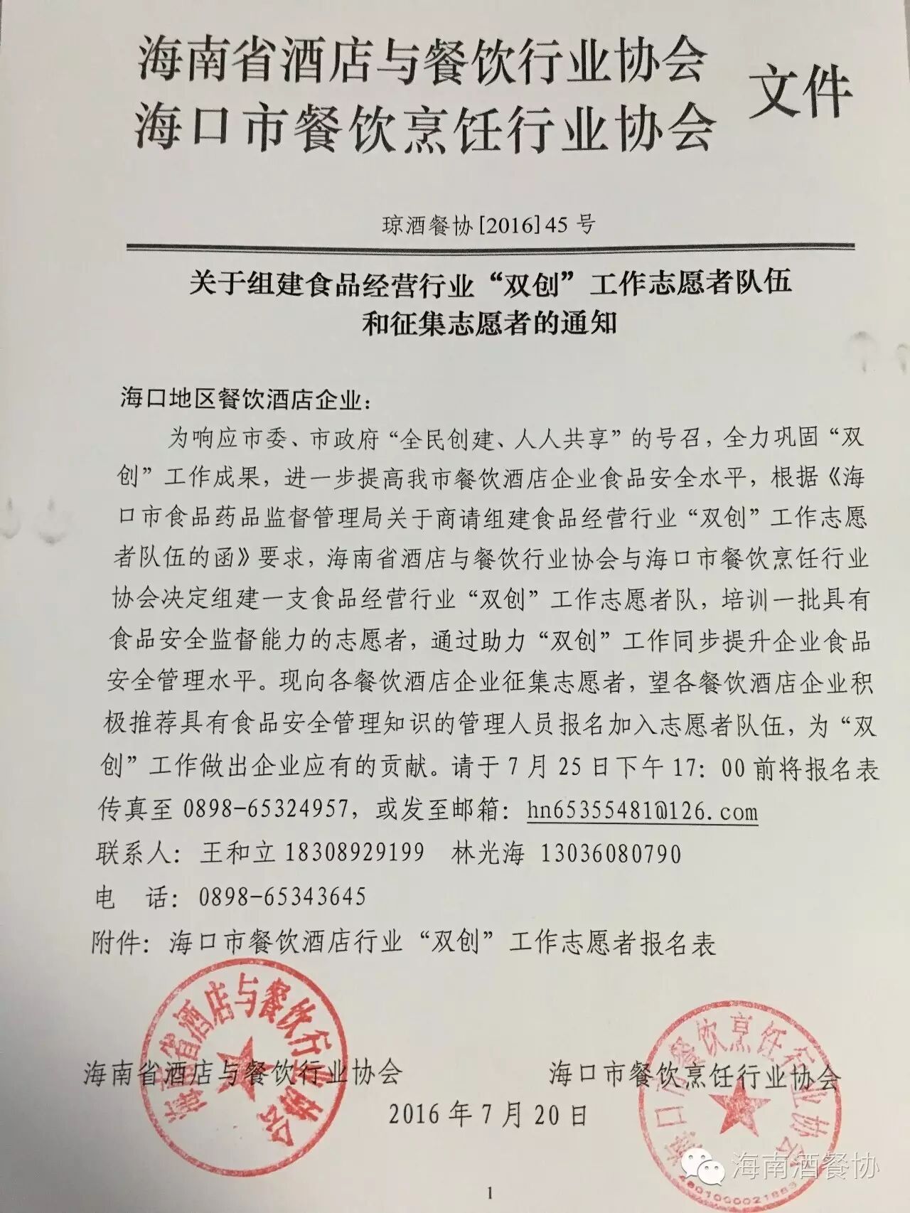 关于组建食品经营行业“双创”工作志愿者队伍 和征集志愿者的通知