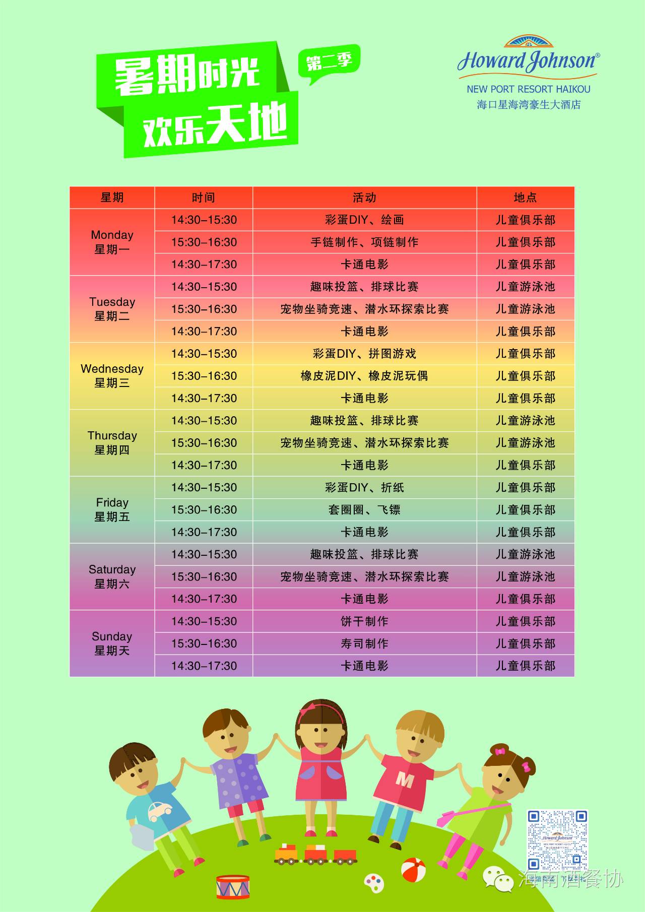 这个暑假,在海口星海湾豪生大酒店,除了尊享套餐优惠礼遇之外,住店客人还可尊享以下无比happy的时光哟!爸妈和宝贝一起嗨起来吧!