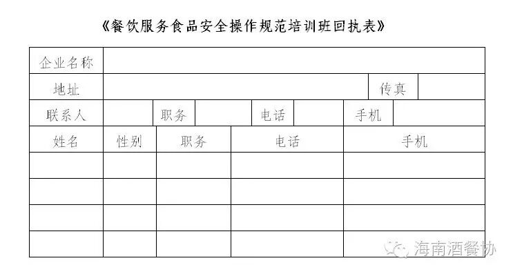 附件:《餐饮服务食品安全操作规范》培训班报名表