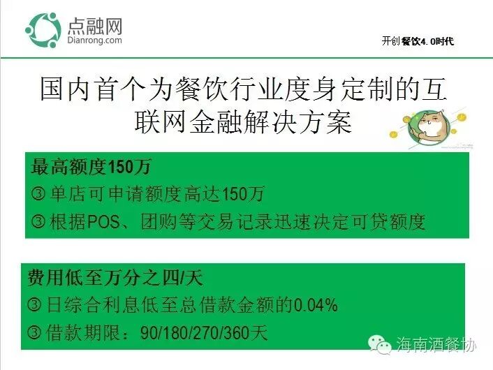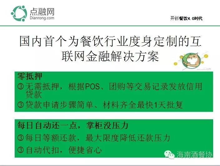 点融网海口分公司于2016年1月5日正式成立,自运营以来,多样化的低利率借贷产品解决了各中小企业及个人的资金短缺问题,借贷程序透明、高效,借贷人可以轻松获得贷款,为海南省地方经济发展做出了积极意义。