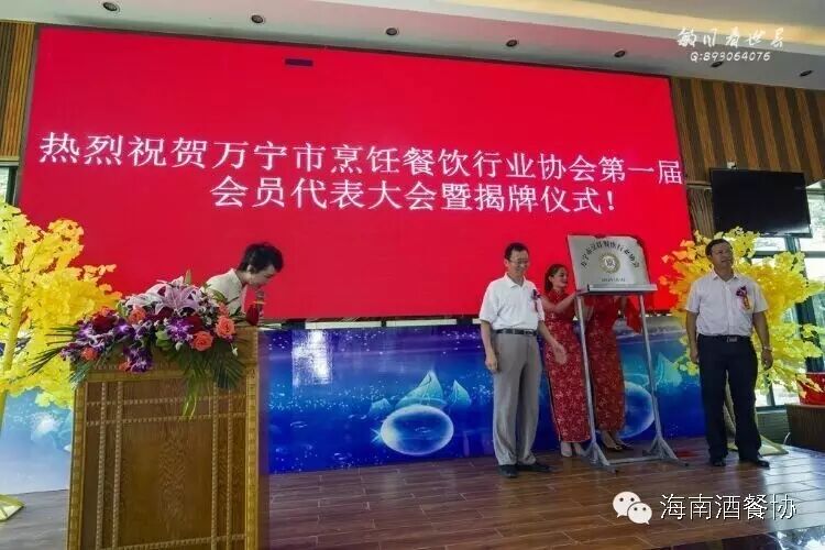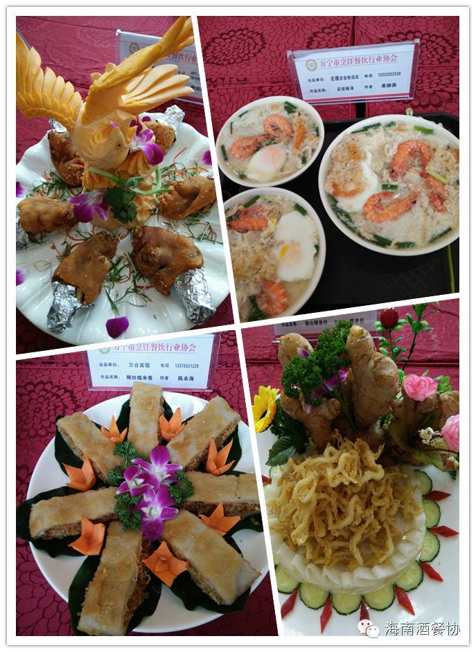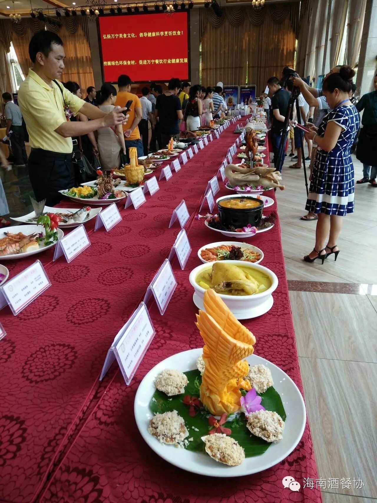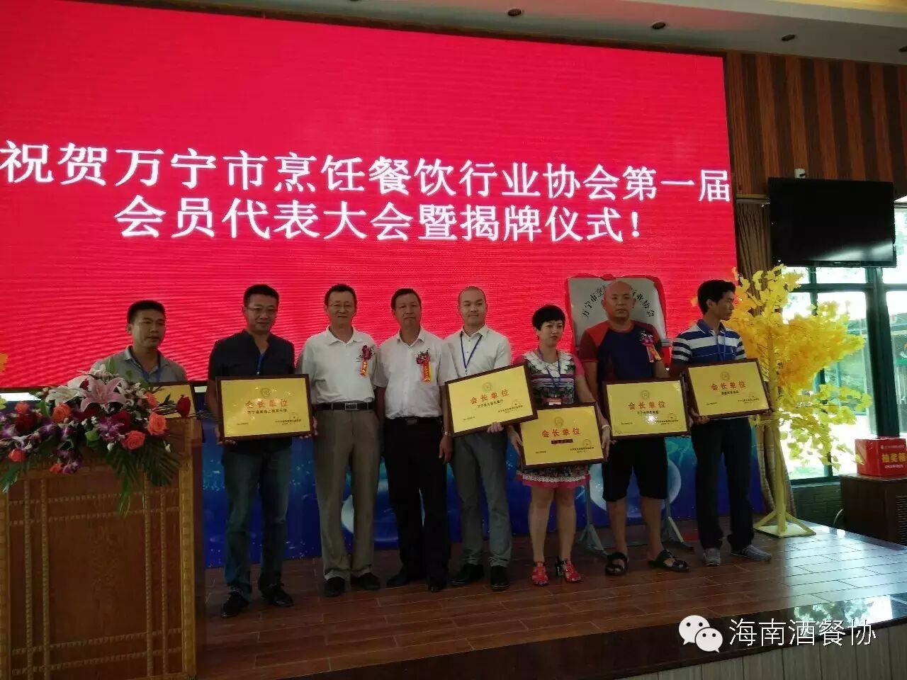 5月9日上午,万宁市烹饪餐饮行业协会第一届会员代表大会暨揭牌仪式在万宁市大洲岛度假山庄召开。万宁市副市长卢玉光、商务局局长任少波等万宁市政府职能部门相关负责人,省酒店与餐饮行业协会秘书长陈刚、省烹饪协会常务副会长林俊春等兄弟行业协会负责人,及万宁市酒店餐饮企业负责人和厨师骨干200多人出席。大会选举产生了以刘海涛同志为会长、林强同志为执行会长兼秘书长的协会第一届理事会和领导班子。会场同期举办“万宁味道、美食荟萃”百菜宴展示,百菜宴由一店一道招牌菜共100道万宁特色菜品组成,集中展示了万宁特色美食文化。