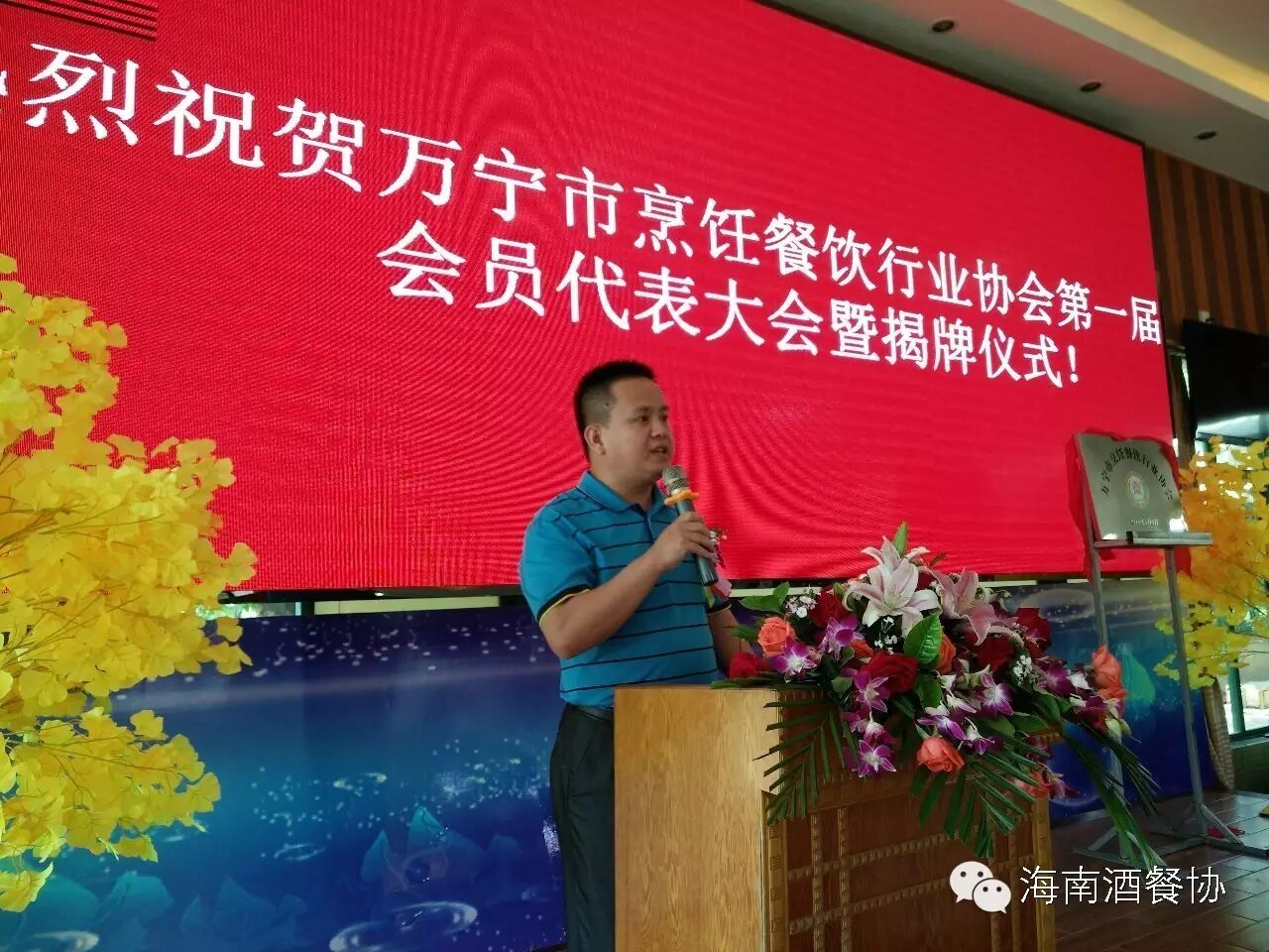 万宁市烹饪餐饮行业协会会长刘海涛做筹备报告