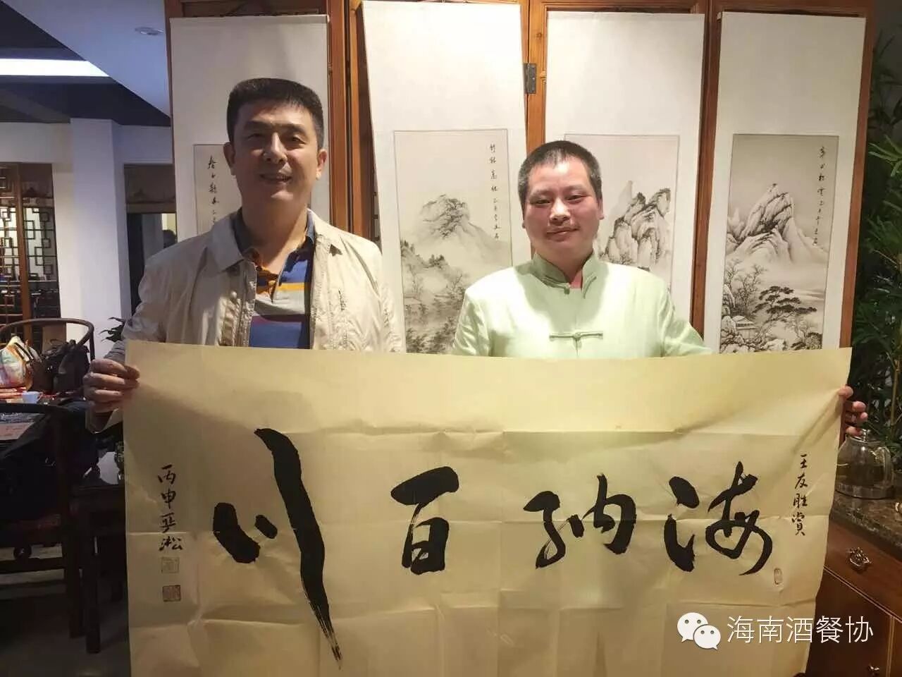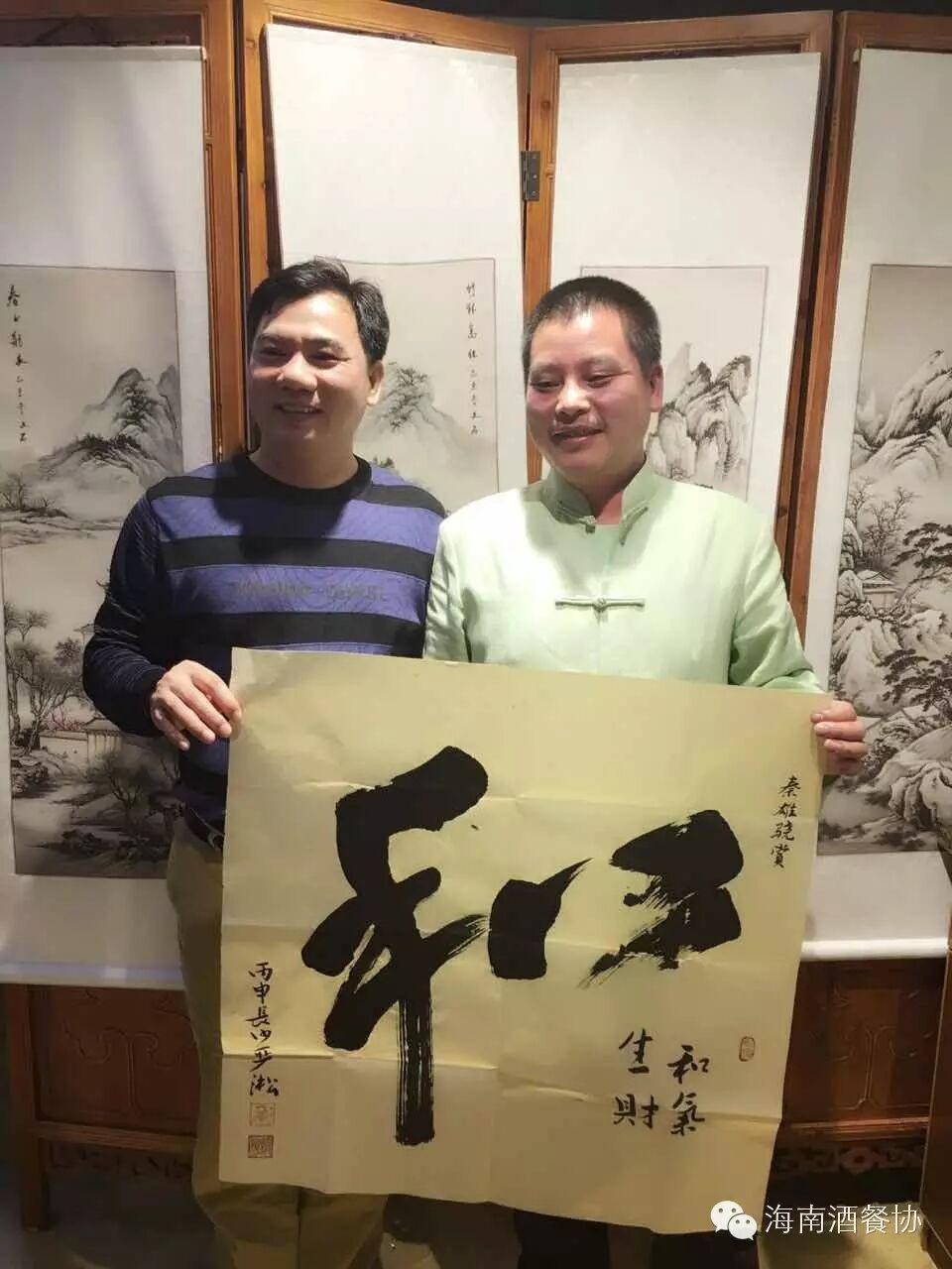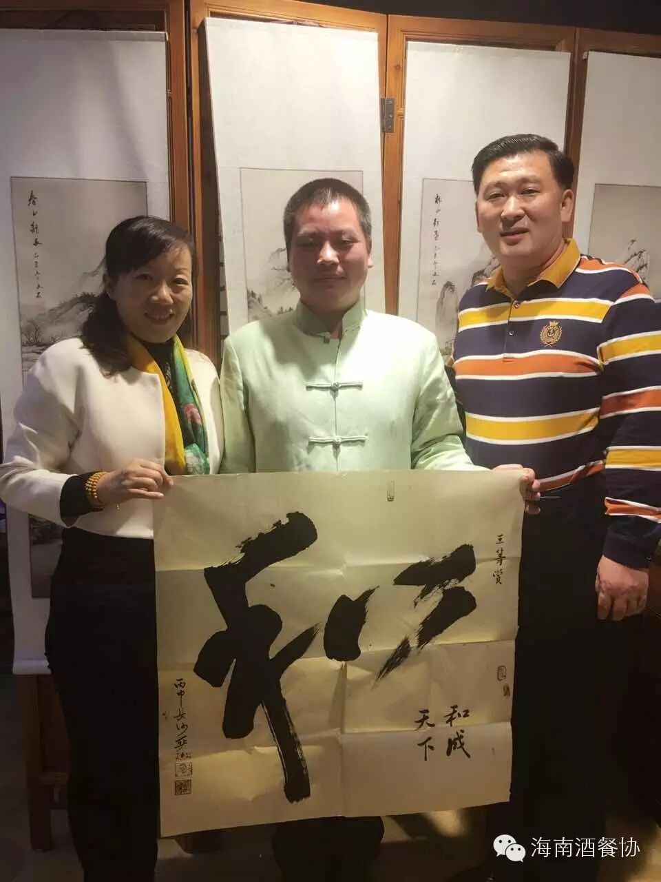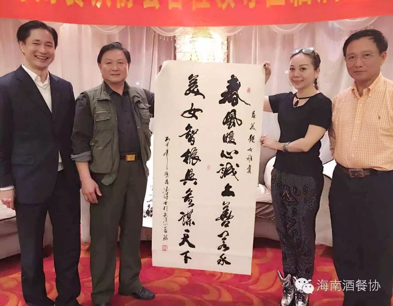 湖北著名书法家冯健老师在晚宴上向海南省酒餐协、龙泉集团及团员赠送书法作品