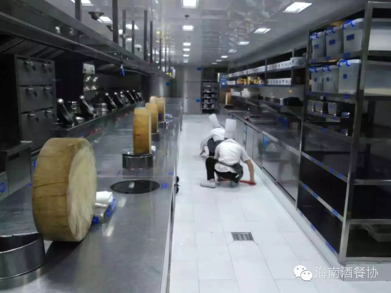 考察团成员在全国厨房六常管理示范店长沙绿草地家宴楼参观