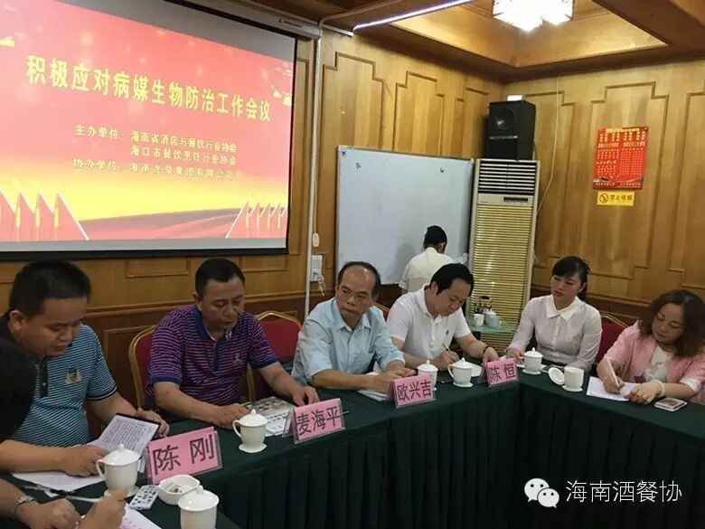 《南国都市报》、《海南特区报》等媒体20日报道了海口市某品牌餐饮企业在食药监局部门执法检查中发现使用过期调味品,食品不符卫生要求等问题后海南省酒店与餐饮行业协会、海口市餐饮烹饪行业协会高度重视此项工作,21日下午在海口龙泉花园酒店会议室召开“积极应对病媒生物防治工作会议”。海口市食药监局、市爱卫办有关负责同志,省酒餐协执行会长、市餐烹协理事长陈恒、秘书长陈刚以及海南龙泉集团、欢乐海岸美食联盟、鼎品鲜酒楼、壹号公馆、瑞华海鲜酒楼、海口皇朝食府、琼菜坊、三湘人家、十八碗等海口重点餐饮企业代表近50人出席。