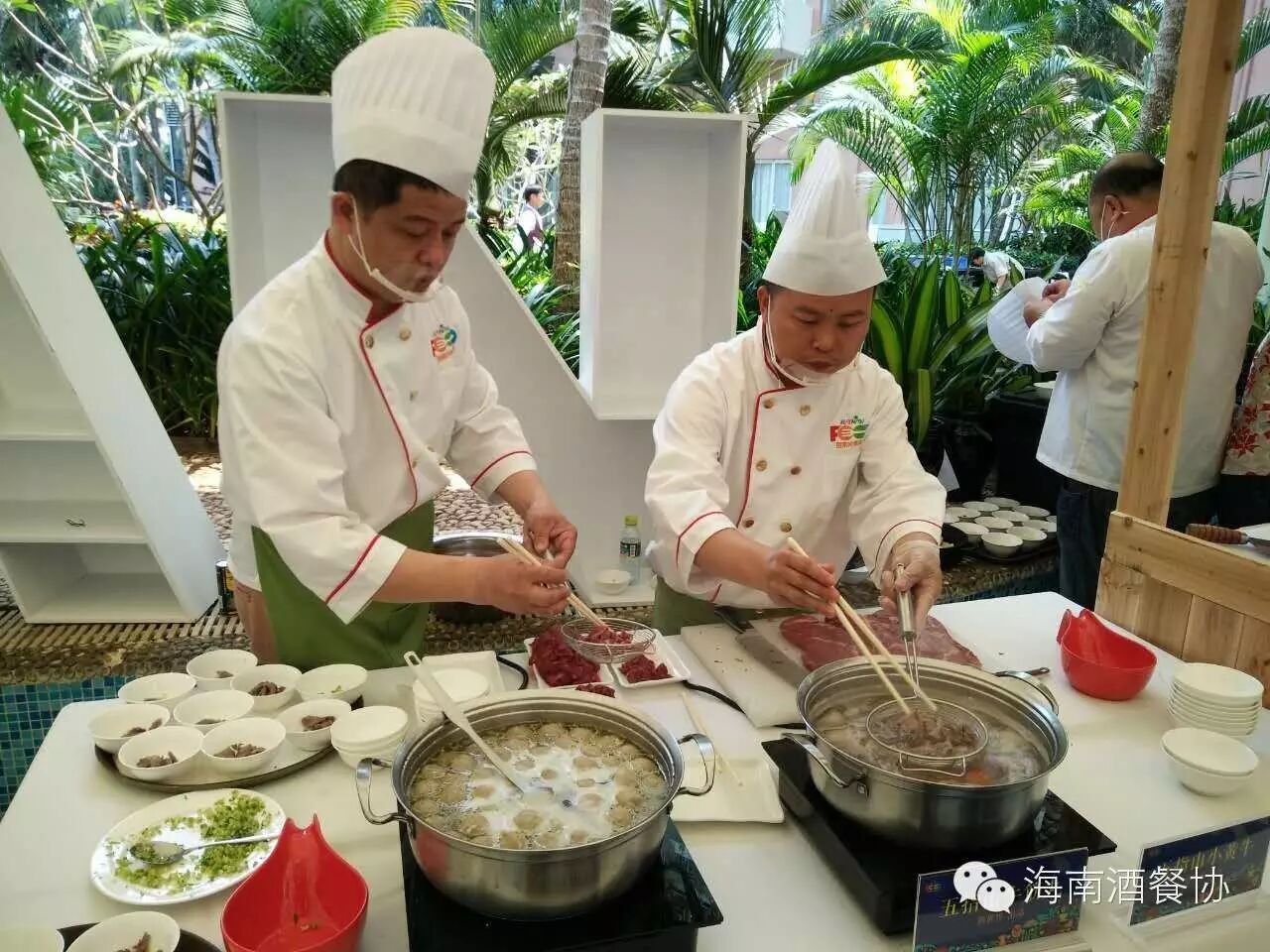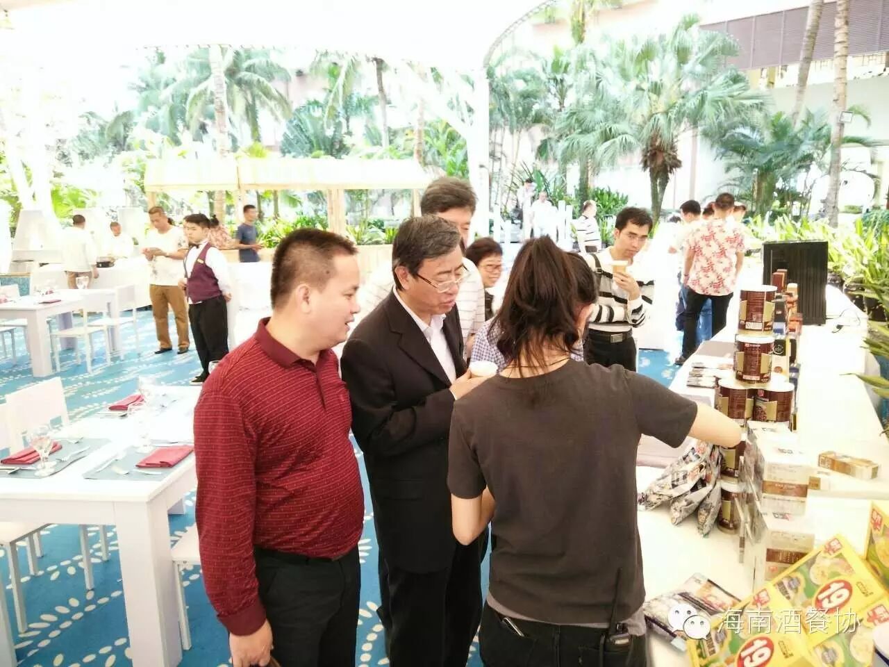 省酒餐协秘书长陈刚陪同海南省商务厅吕勇厅长参观美食园现场嘉宾“抢鲜”品尝海南精品美食