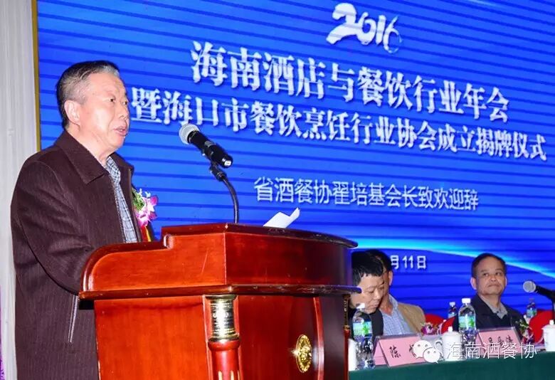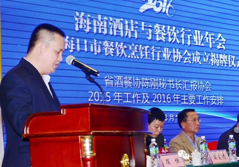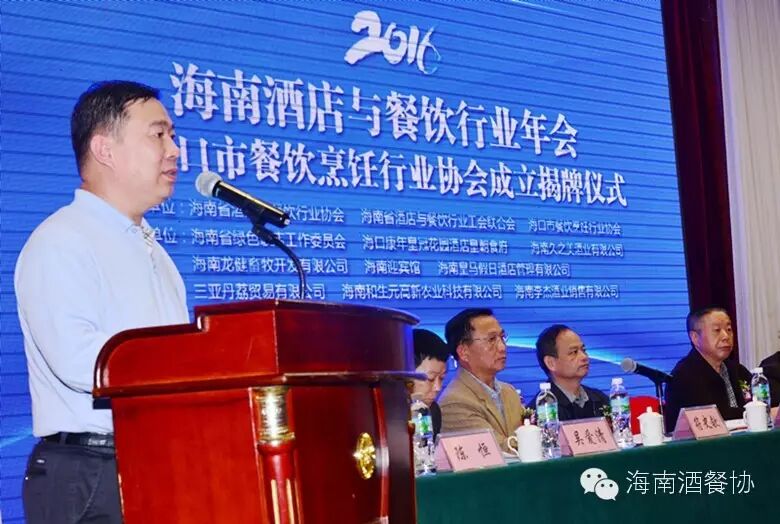 3月11日,“2016年海南酒店与餐饮行业年会”在海口康年皇冠花园酒店召开。原省政协副主席符气浩、中国饭店协会常务副会长兼秘书长陈新华、省总工会副主席郭奕秋、省农业厅副厅长周燕华、省工商联专职副主席徐凤、省人大常委会原秘书长、省酒店与餐饮行业协会会长翟培基,省人社厅副巡视员龙小敏、省政协经济委副主任、海南产业经济研究院院长李仁君,省商务厅姬国辉处长、省人力资源开发局副巡视员王开初,省工商联副主席、省酒餐协理事长、龙泉集团董事长符史钦,省地方税务局纳税服务处处长吴爱清、省工商联处长翟慧玲、海口市商务局副局长陈安妮、海口市地税局副局长吴梅、海口市商务局处长颜启芬、海口市人社局卢氦处长、国家开放大学海南分院院长杨哲昆、省民间组织管理局社团办主任傅佳,省酒餐协会执行会长陈恒、省烹饪协会常务副会长林俊春,海口市餐饮烹饪行业协会会长、海南新宝岛餐饮管理有限公司总经理林壮森及省内外专家学者及全省重点酒店餐饮企业负责人、基层工会主席、新闻界代表300多人出席大会。