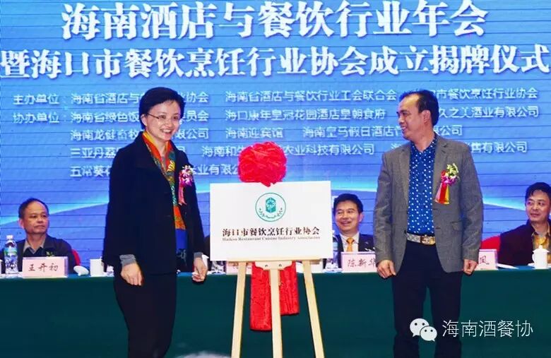 会上,与会代表还一起共同见证了海口市餐饮烹饪行业协会的揭牌成立。据悉,海口市餐饮烹饪行业协会是为了深入贯彻落实党的十八届五中全会五大发展理念,努力实现“十三五”良好开局,深入加快推进海口旅游特区建设和“双创”工作,在海口市委、市政府的关心支持下,经业务主管单位海口市商务局、市民政局批准成立的,它的成立将开启海口市餐饮业发展的新格局、新时代。