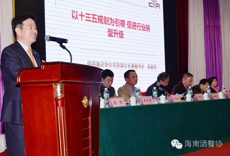 中国饭店协会常务副会长兼秘书长陈新华到会祝贺并就中国饭店业在当前所面临的的挑战与机遇作专题演讲,精辟地解读了行业当前形势,深入分析了行业所面临的机遇和挑战,高屋建瓴地提出了鲜明的主张,明确了行业的发展定位。省商务厅姬国辉处长作讲话,他肯定了酒店餐饮行业今年所取得成绩的同时,结合我省行业的实际,精辟地分析了当前行业现状和面临的问题,给协会和全省酒店餐饮企业提出了希望和要求,指明了今后我省酒餐行业发展的方向。在经济新常态下,我省酒店餐饮行业的收入也终止了连续三年增速下滑,显增速态势,取得了可喜成绩。期间,互联网成为了酒店餐饮行业转型发展的新动力,酒店餐饮业进入以大众消费为主导、多业态并存发展的新增长时代。特别是2015年,海南全省住宿营业额194.34亿元,比上年增长12.4%;全省餐饮业营业额222.32亿元,比上年增长17.9%。