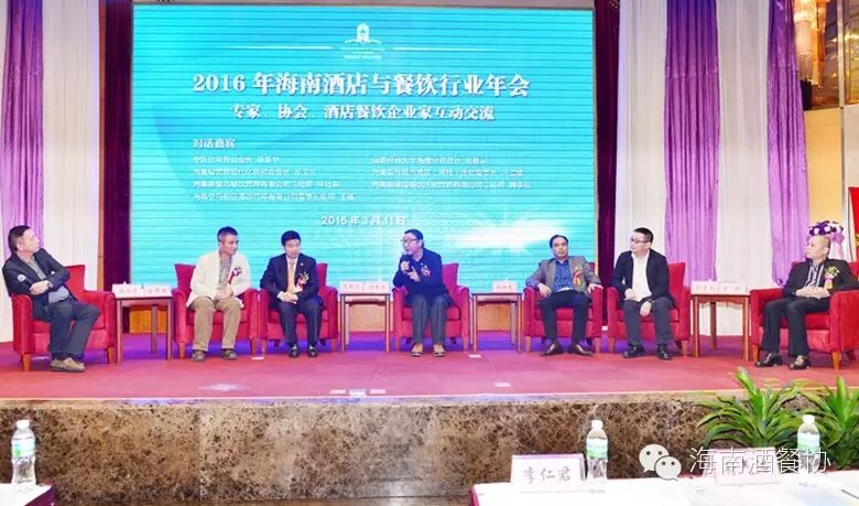 建言献策谋发展,与会专家、学者和企业家围绕 “酒店餐饮业立足新常态、谋求新跨越”主题展开热烈的互动对话,主要针对如何利用党的十八届五中全会提出的“创新、协调、绿色、发展、共享”的五大发展理念,在新形势下,我们酒店餐饮业该如何直面新政带来的市场变化和消费趋势调整,转变经营方式,改变营销策略,调整产品结构,挖掘新兴市场,并建议政府部门采取那些措施,给行业减负,帮助企业创新发展,实现酒店餐饮业的可持续发展。 ▲互动对话环节(左起:省管理现代化研究会会长胡卫东、海南森林城市酒店(客栈)连锁董事长冯清雄、中饭协常务副会长陈新华、国家开放大学海南分院院长杨哲昆、海南新宝岛餐饮管理有限公司总经理林壮森、海南拾味馆餐饮连锁管理有限公司总经理龚季弘、海南皇马假日酒店管理有限公司董事长助理王雄