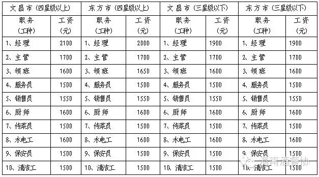 1、四星级以上(含四星级)和三星级以下(含三星级)酒店企业十大工种岗位最低工资标准,其他市县参照此标准执行。
