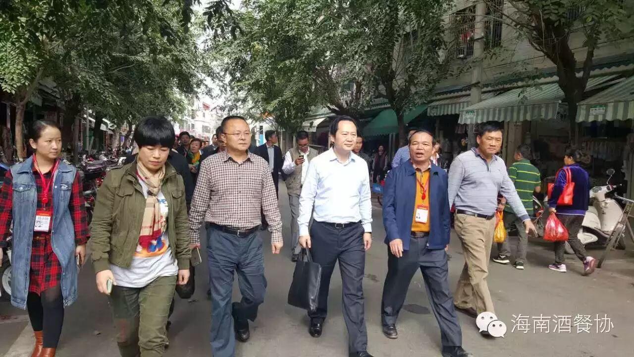▲县委、县政府领导陪同企业负责人参观陵水县商业街、海韵广场、沿河两岸商业网点
