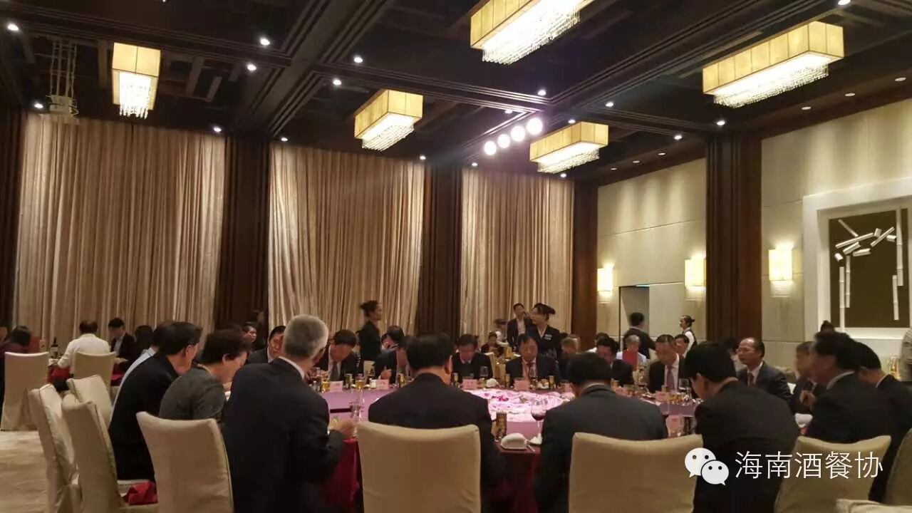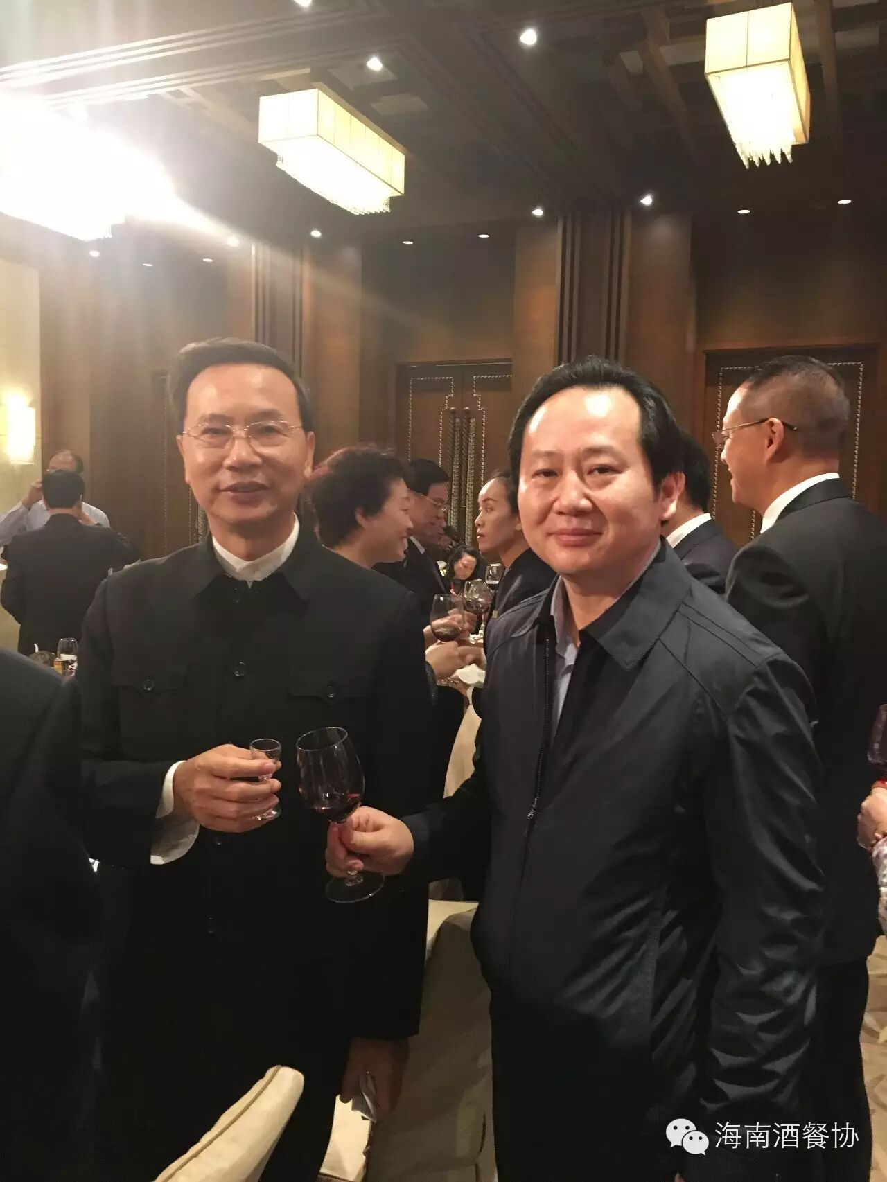 海南省委副书记李军在欢迎晚宴上与省科技企业联合会、省酒店与餐饮行业协会执行会长合影留念