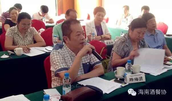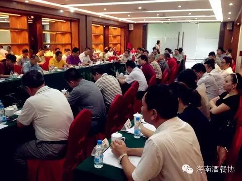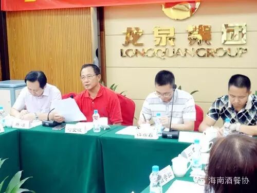 2015年6月14日下午,由海南省酒店与餐饮行业协会举办的2015年上半年酒店餐饮企业经营交流会暨新常态下行业转型发展座谈会在海口龙泉渔村召开,省商务厅服务业综合处许辉春处长、海口商务局总经济师陈亮出席会议,省酒店与餐饮行业协会理事长、龙泉集团董事长符史钦、执行会长陈恒、秘书长陈刚,省烹饪协会常务副会长林俊春及海南知名品牌酒店餐饮企业负责人、媒体记者等70余人参加了座谈。会议由酒店与餐饮行业协会理事长符史钦主持,与会代表围绕2015年上半年酒店餐饮企业的经营现状、新常态下行业转型发展的基本情况进行了交流,就如何促进酒店餐饮企业发展提出了意见和建议。